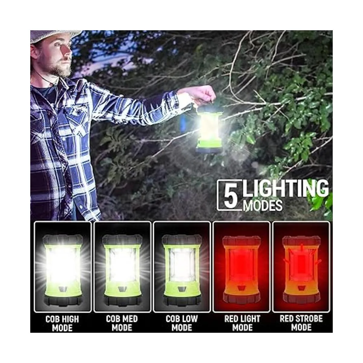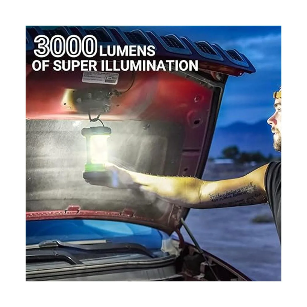 Brillo masivo: esta luz de camping tiene una larga duración con una capacidad de batería completa. La innovadora tecnología de luz COB proporciona un brillo masivo de hasta 3000 lúmenes y revela un total de 360 de luz suave y uniforme que ilumina una gran área. Es imprescindible para la oscuridad, cortes de energía y cualquier preparación para emergencias.