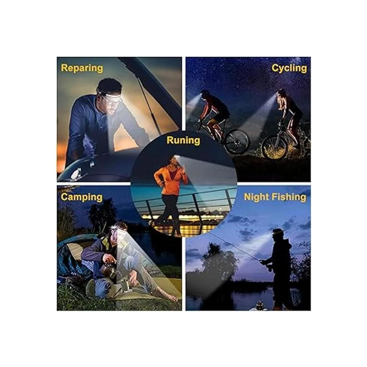 Linterna frontal recargable por USB Batería recargable integrada de gran capacidad de 1200 mAh. No solo ahorra el costo de reemplazar las baterías, sino que es respetuoso con el medio ambiente. Tiempo de carga: 2 horas completamente cargada. Tiempo de trabajo durante 38 horas en diferentes modos de luz. Si se requiere iluminación durante mucho tiempo, se recomienda llevar dos a la vez para estar en espera.