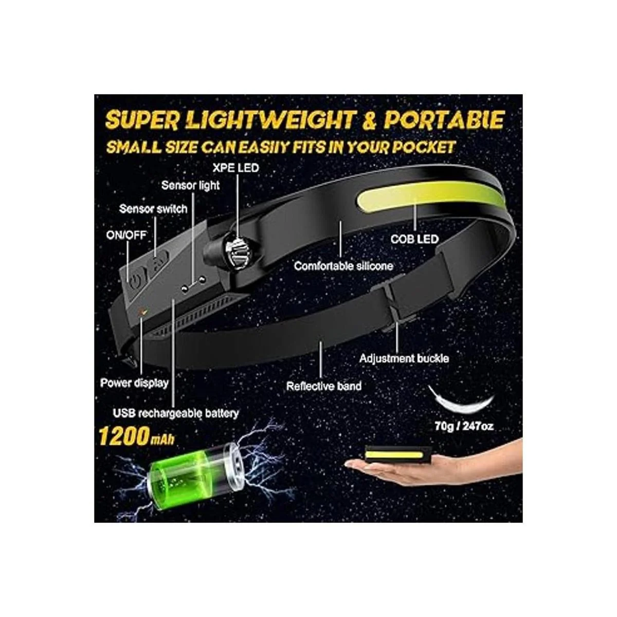 Linterna LED recargable para faros delanteros, 230 de haz ancho, lámpara de cabeza con sensor de movimiento brillante, 5 modos, luz de cabeza ligera impermeable para exteriores, para campamento, correr, senderismo, pesca