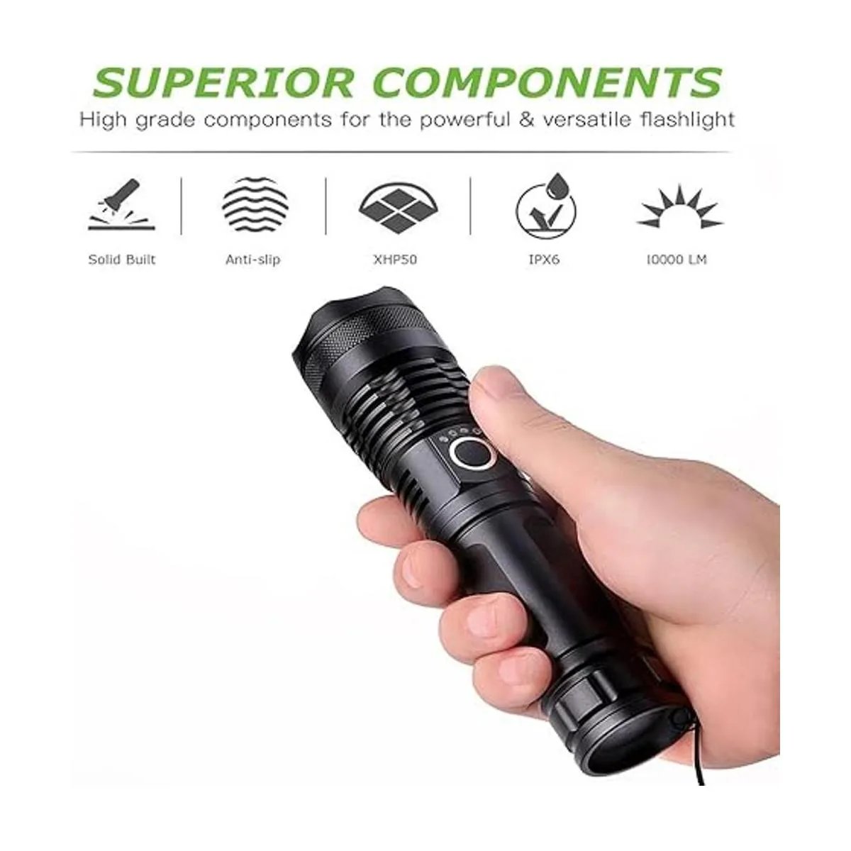 Linterna táctica recargable de 5000 lúmenes, XHP50 LED para senderismo, caza, camping, deportes al aire libre incluye batería 26650