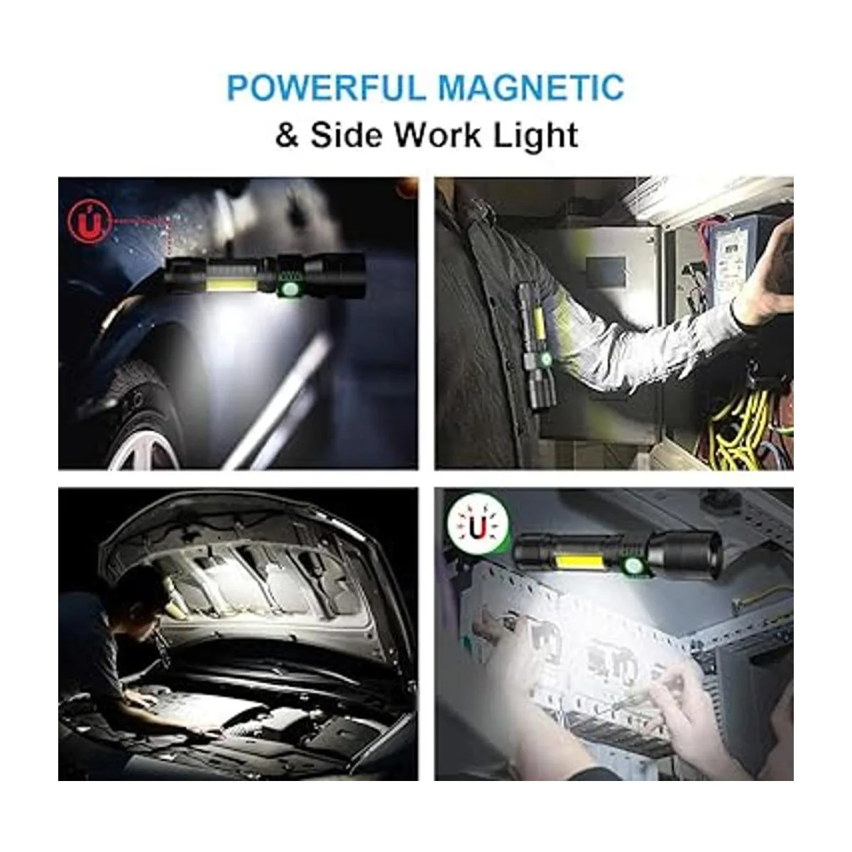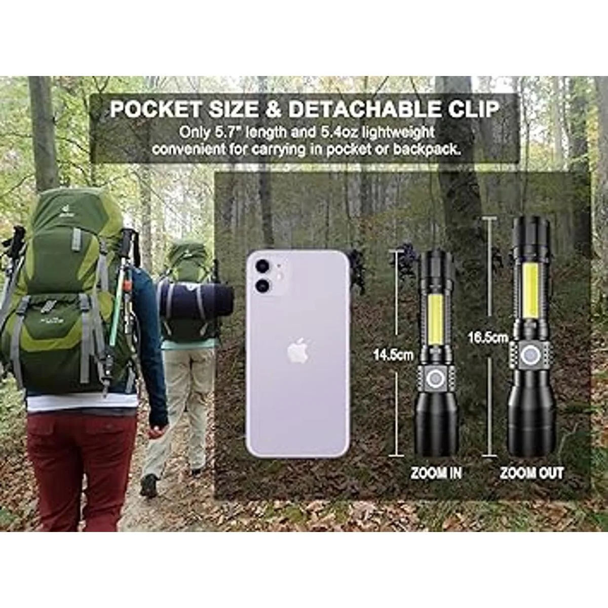 Linterna recargable por USB: hasta 10 horas de iluminación potente, se puede cargar completamente en 3 horas, la linterna tiene protección contra sobrecarga, lo que significa que puede cortar automáticamente la energía después de la carga completa. Se carga fácilmente con cualquier alimentación USB, como cargador de coche, banco de energía, computadora, enchufe USB, cargador de pared USB.