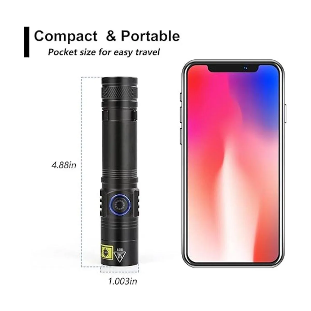 Diseño de alta calidad: la mini linterna está hecha de aluminio impermeable duradero de alta calidad, que es duradero y fácil de disipar el calor. Fácilmente recargable con USBC integrado, es la elección perfecta para tu uso diario.
