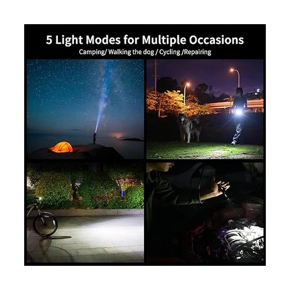 Multimodo e interruptor de cola Esta linterna táctica LED tiene 5 modos de iluminación y tiene una función de memoria: alto/medio/bajo/ECO/SOS para satisfacer tus necesidades en diferentes situaciones. El interruptor trasero pone tu pulgar hacia atrás y le permite descansar fácilmente en la linterna.