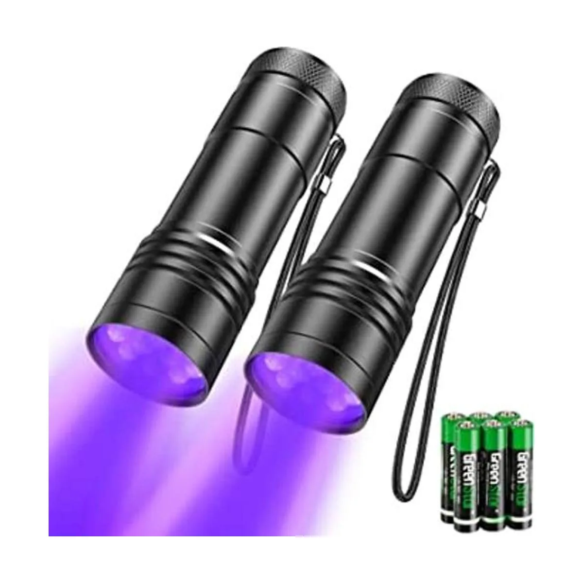 Linternas UV, paquete de 2 linternas de luz negra con 12 LED y luz negra de 395 nm para detección de orina de mascotas y manchas domésticas, 6 pilas AAA incluidas