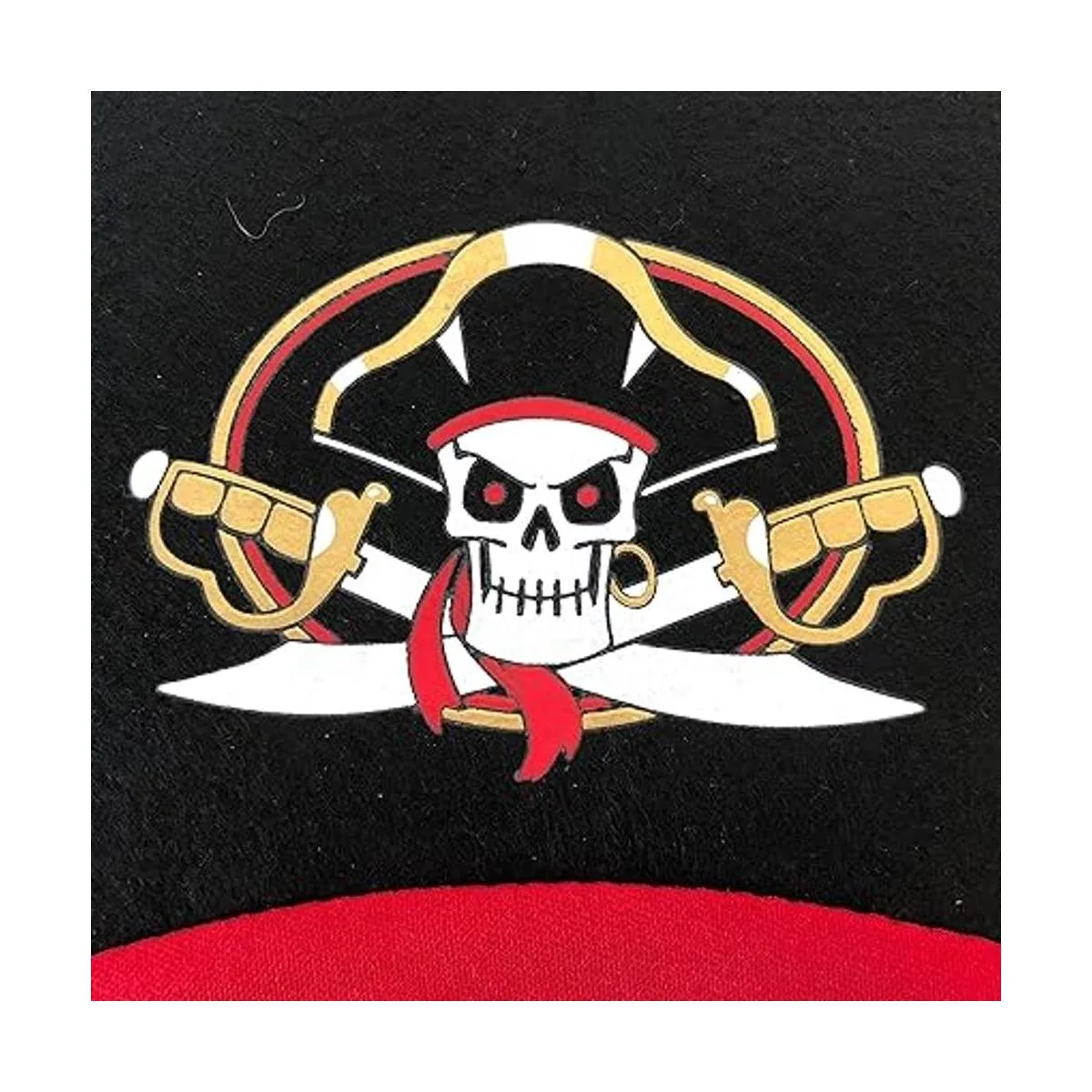 Hecho de poliéster satinado suave con obras de arte vívidas y hermosas y colores dorados con la calavera de la Cruz del Capitán y sus cuchillas cruzadas