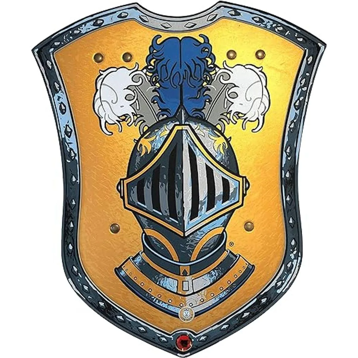 Parte de una línea completa de disfraz de caballero con un escudo de juguete y una capa para disfrazarse como un caballero misterioso sin miedo en armadura completa