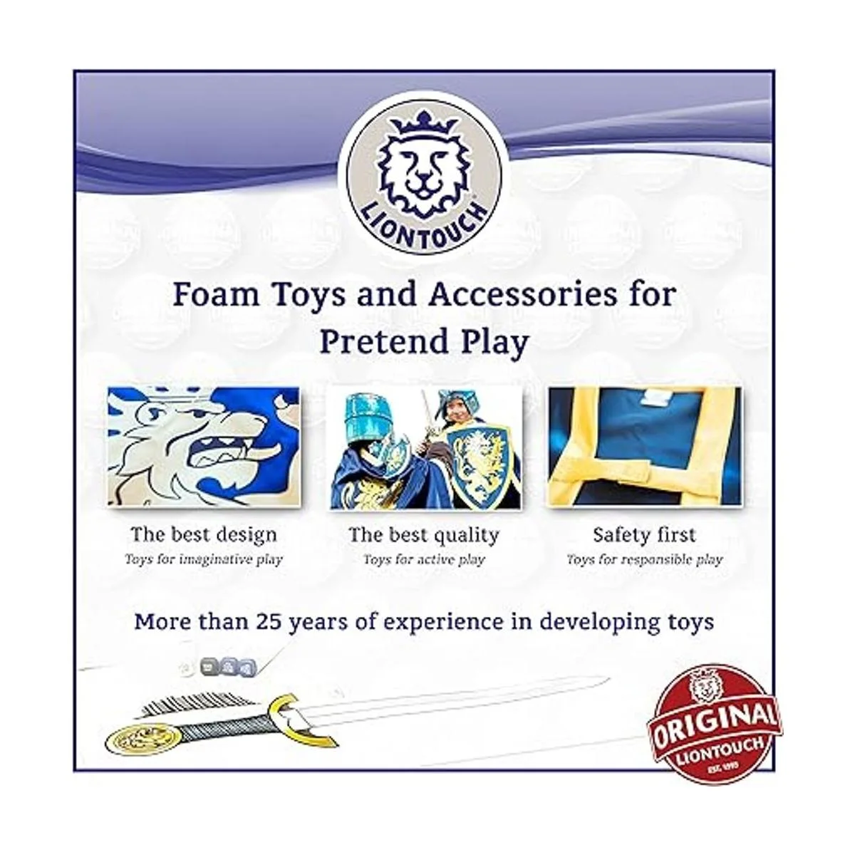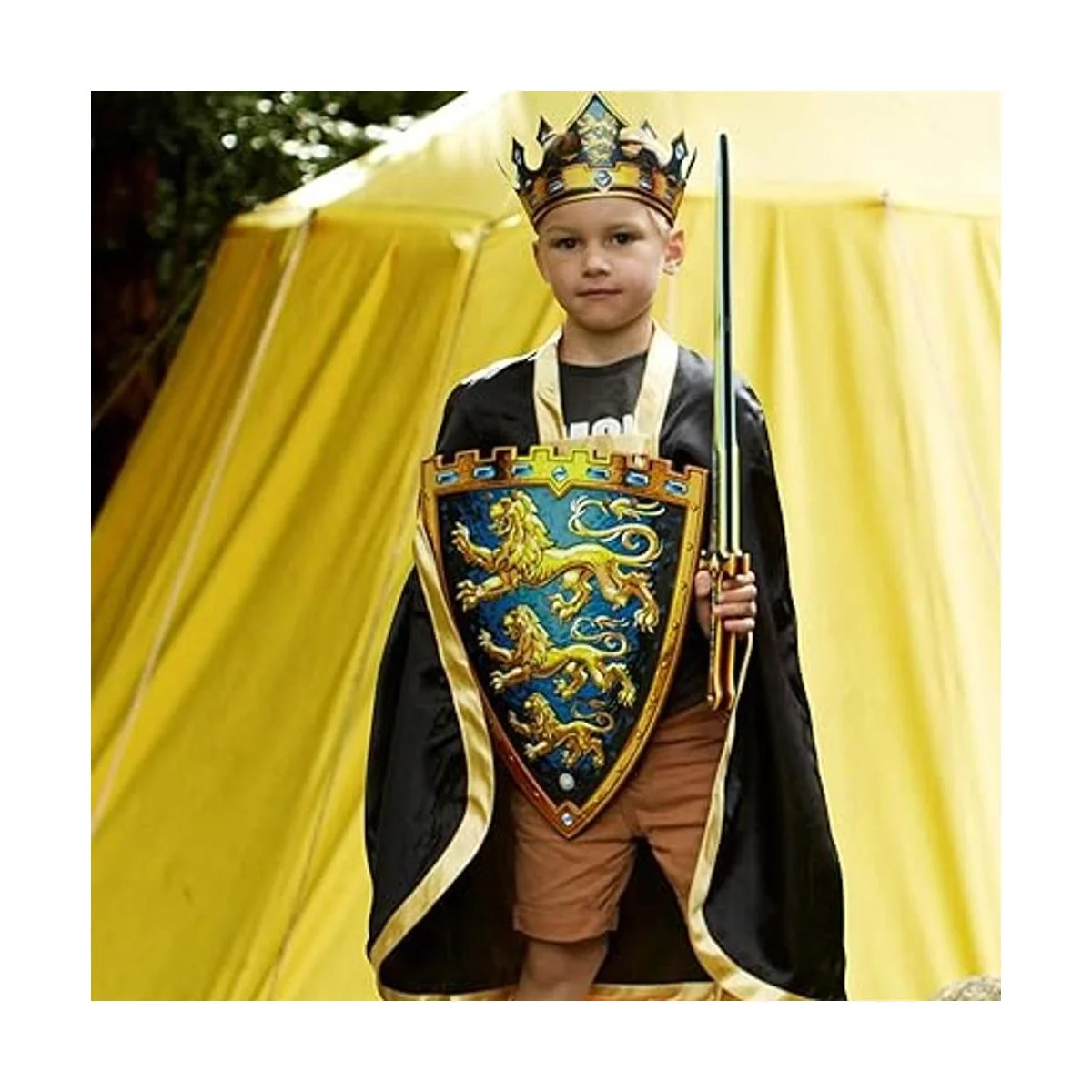 Parte de una línea completa de disfraces King con armas de juguete, una espada, un escudo y una corona para vestirse como un rey renacentista real en armadura completa