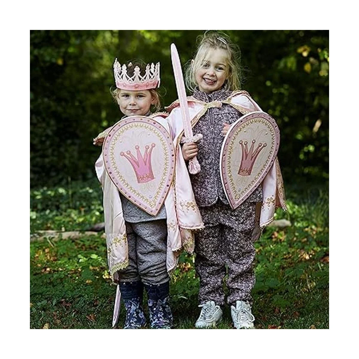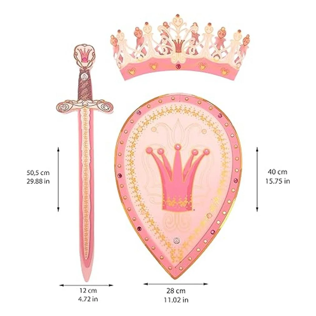 La espada, escudo y corona están hechos de espuma EVA flexible y suave que garantiza un cosplay seguro y tiene hermosas decoraciones. nete al Rey, Princesa y los Caballeros en una búsqueda para defender su honor y salvar al Reino del mal