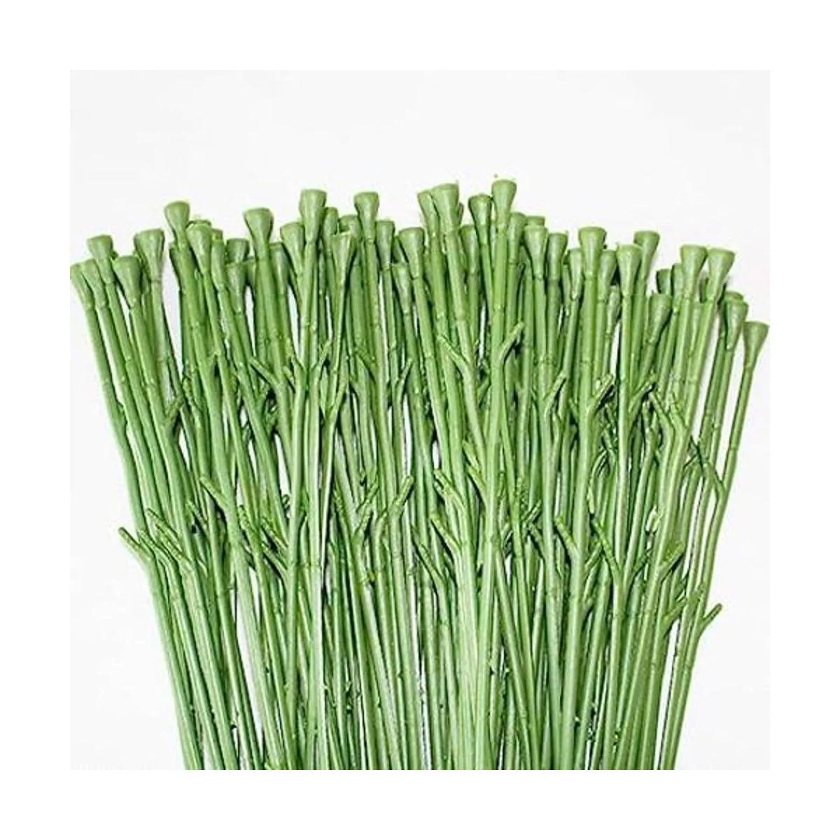 LIOOBO 100 tallos de alambre floral, alambre de tallo verde de flores artificiales de plástico, ramo de manualidades para hacer tallos florales