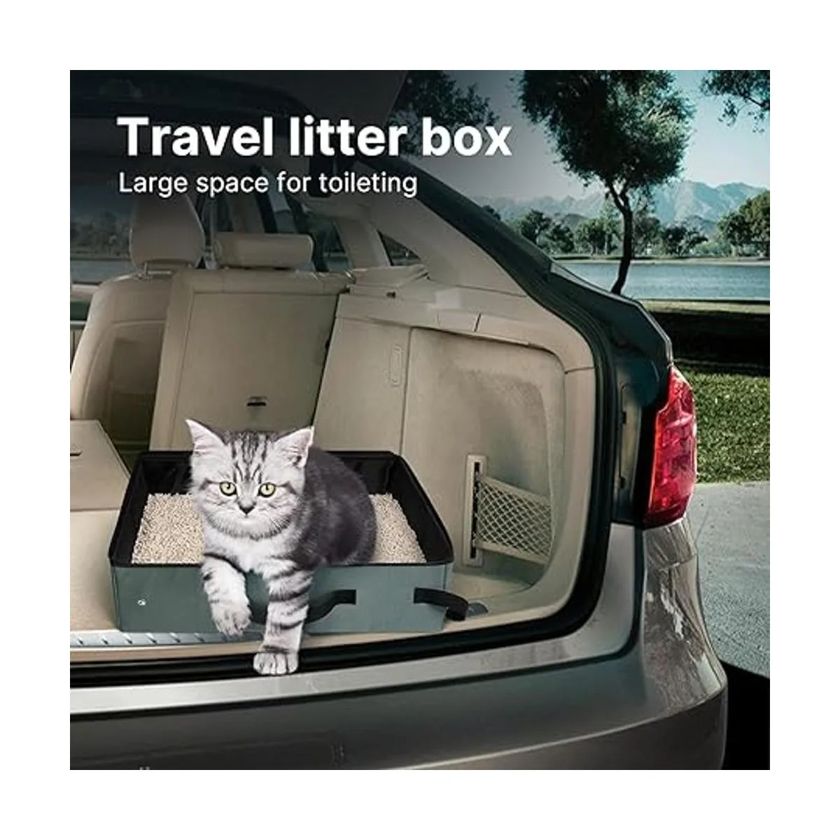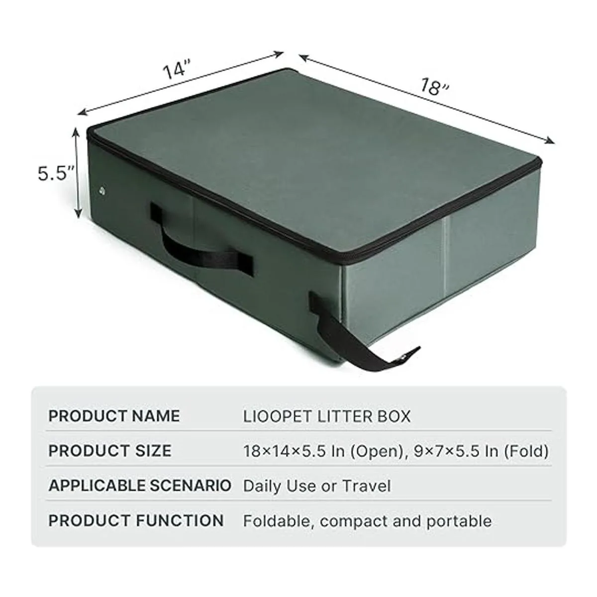 LIOOPET Caja de arena portátil con tapa, caja de arena de viaje a prueba de fugas para gatos, caja de arena plegable ideal para viajes, estancias de hotel y viajes por carretera 18 x 14 x 5.5 pulgadas