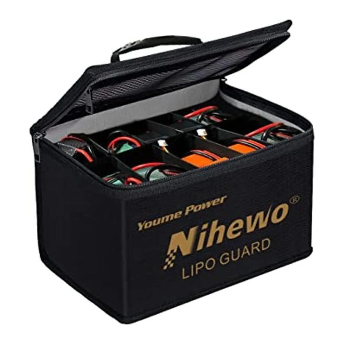 Lipo Bolsa segura a prueba de explosiones para batería Lipo, organizador de gran capacidad, bolsa segura para almacenamiento de batería Lipo, transporte y carga con asa duradera y bolsillo de malla