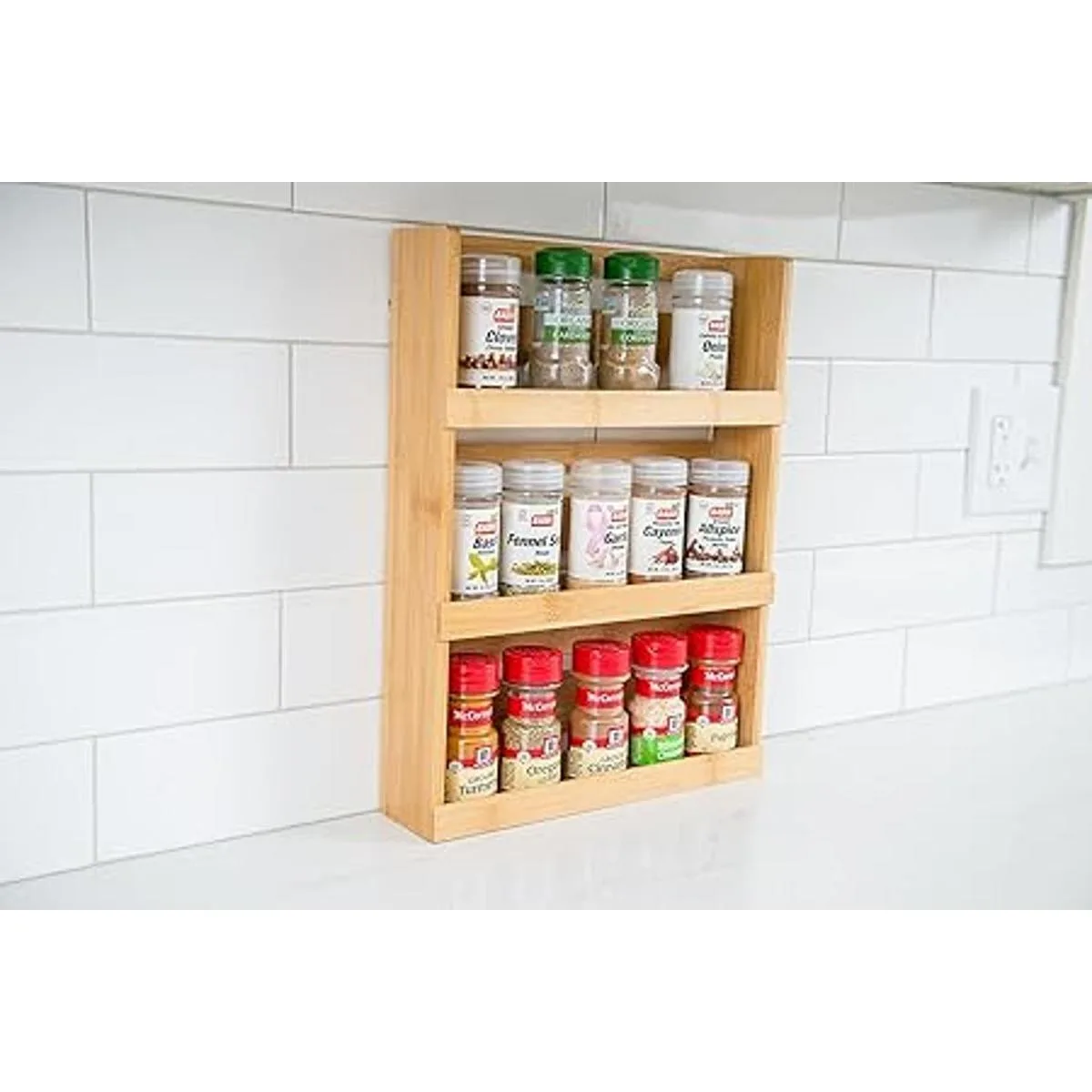 Lipper International Estante de especias de madera de bambú de 3 niveles para especias o suministros de manualidades, 12 x 2 34 x 16 pulgadas