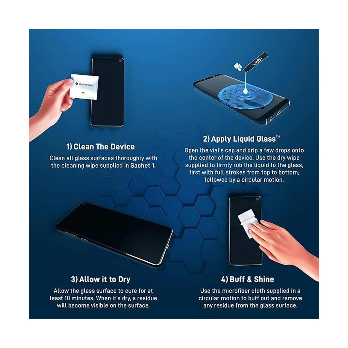 Liquid Glass es un protector de pantalla de tecnología avanzada, invisible y lavable que se adhiere al vidrio de tu dispositivo ofreciendo una mayor resistencia a arañazos, humedad y golpes.