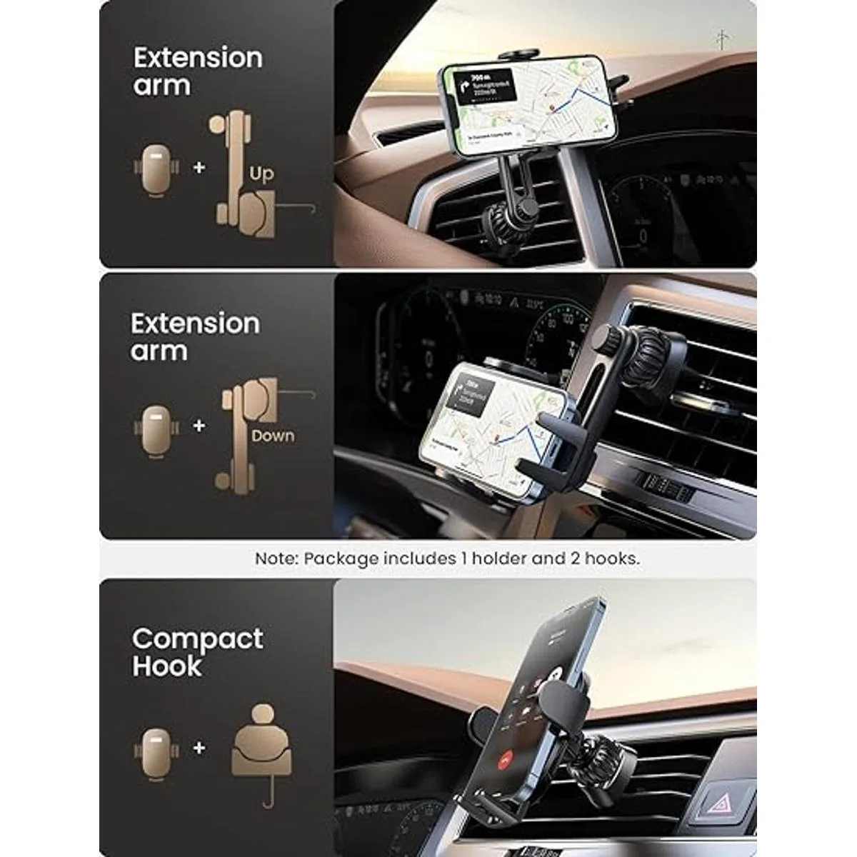 Más estable, menos bloqueo: el laboratorio de la marca LISEN ha actualizado este soporte de teléfono para coche desde 3 direcciones. Brazo de extensión mejorado para proteger el choque de sobrecalentamiento de tu teléfono; Soporte de teléfono celular para soporte de coche con el gancho de acero más estable, Soporte de coche para teléfono celular que tiene la fuerza de sujeción más fuerte, que hasta 48 libras equivalente a 70 iPhone 13 Pro Max. LISEN proporciona al menos 1 año de servicio al usuario.