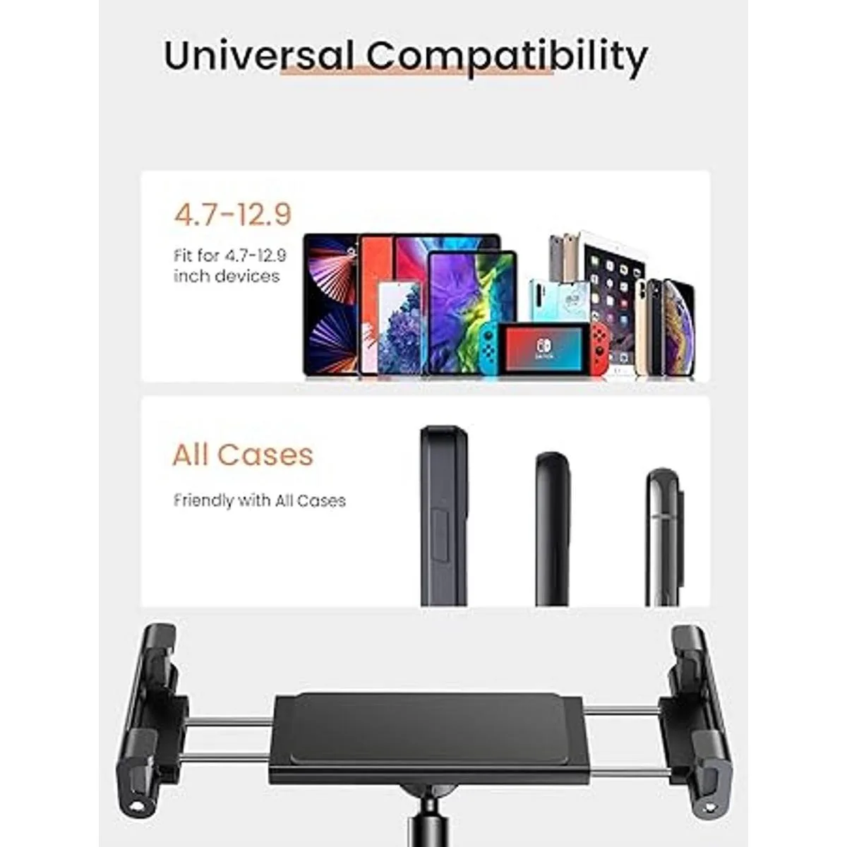 Amplio compañero flexible y compatible con fundas: el soporte para tableta de escritorio es compatible con dispositivos de 4.7 a 13 pulgadas, como iPad Pro 12.9 / 9.7, iPad 1/2 / 3/4, iPad Air 2, iPad Mini 1/2 / 3/ 4, iPhone 12 Pro Max, Surface Pro Series, Samsung Galaxy Tab, Lenovo Tab, Fire HD series, etc. No hay necesidad de quitar la funda de la tableta mientras se usa