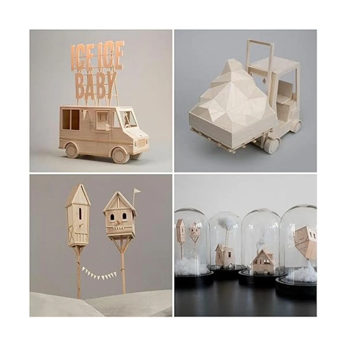 Amplia aplicación: la madera de abedul artesanal se puede utilizar para hacer modelos, esculturas, vela de madera, puente de pagoda, accesorios de película, modelo militar, juguetes; perfecto para artes y manualidades, proyectos escolares. También es bueno para pirografía, proyectos láser, etc.
