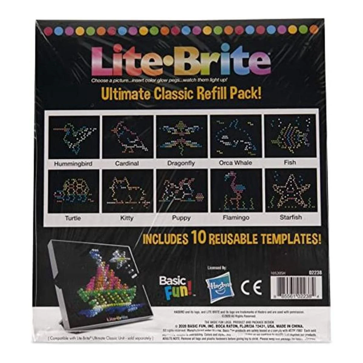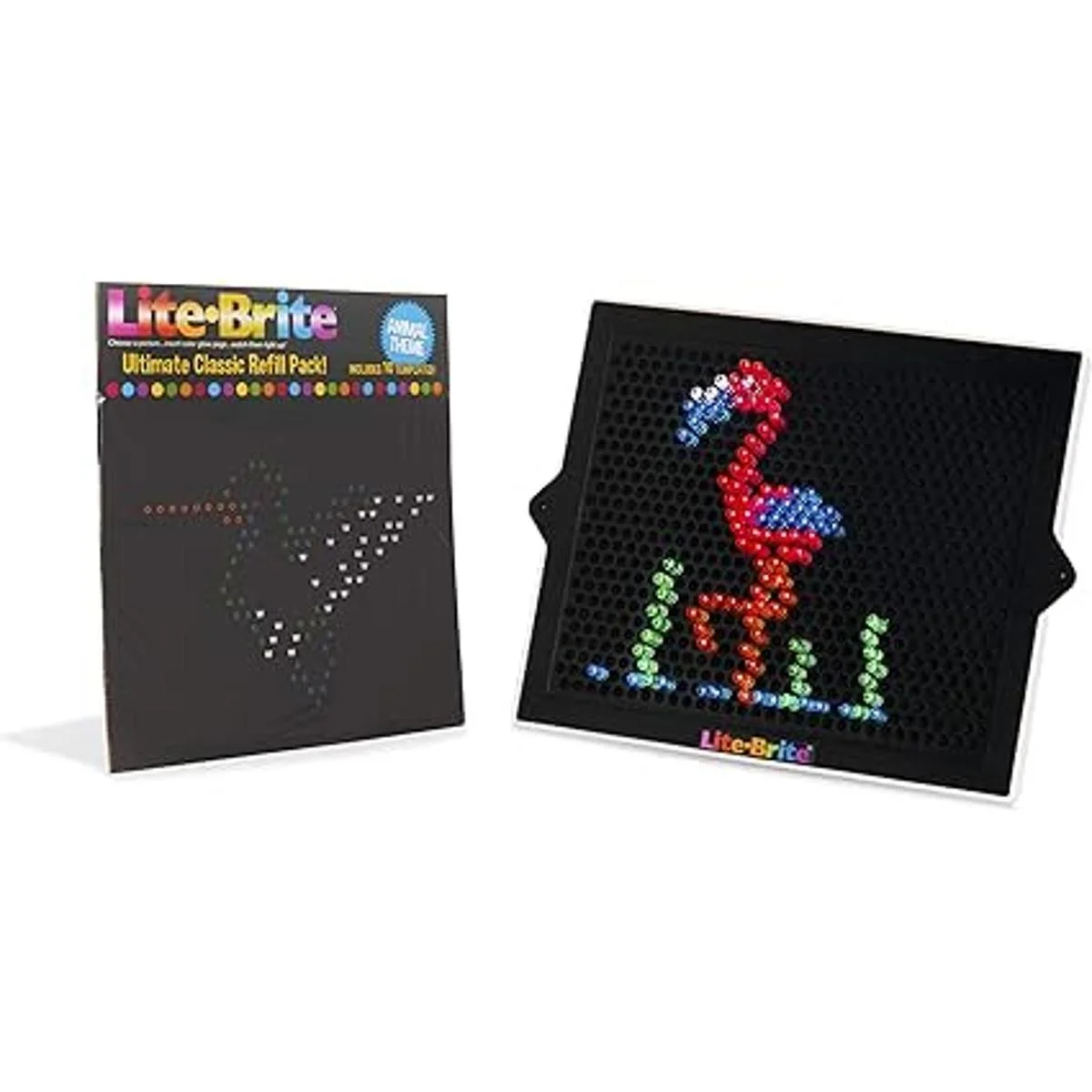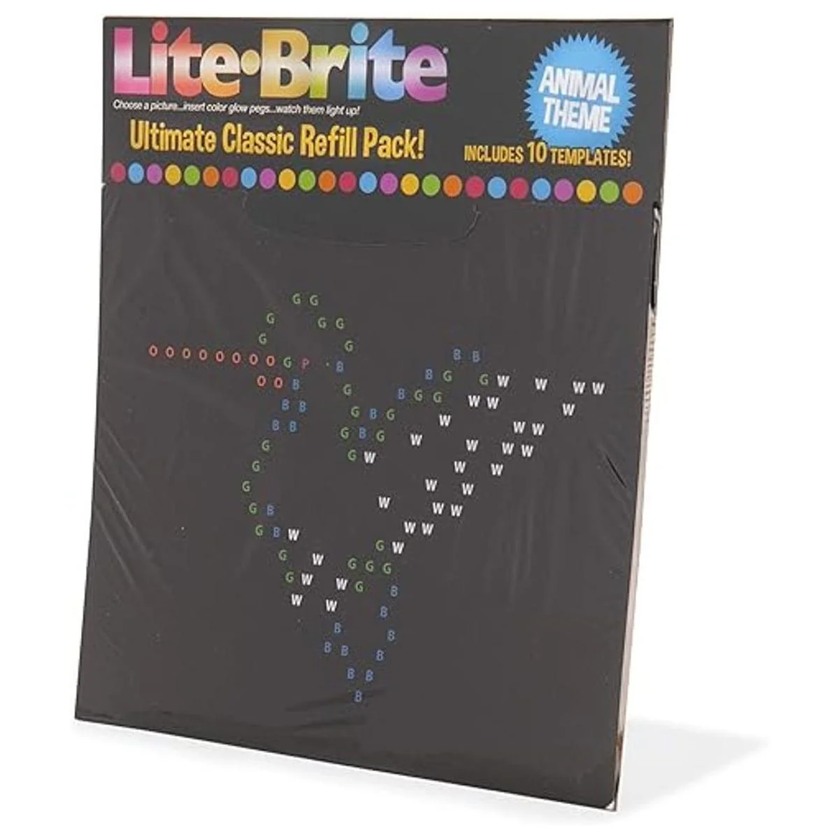 Lite Brite Ultimate Classic Paquete de recambio – Tema de animales – 10 plantillas reutilizables – Exclusivo de Amazon, negro