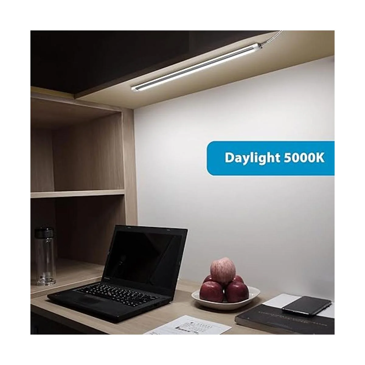 Litever Barra de iluminación LED para debajo del gabinete, intensidad regulable, 1 barra de luz LED delgada de 12.0 in, adaptador de corriente, interruptor, atenuador incluido. enchufe. Perfecto para encimeras de cocina, armario de mesa de trabajo, luz blanca de día 5000 K
