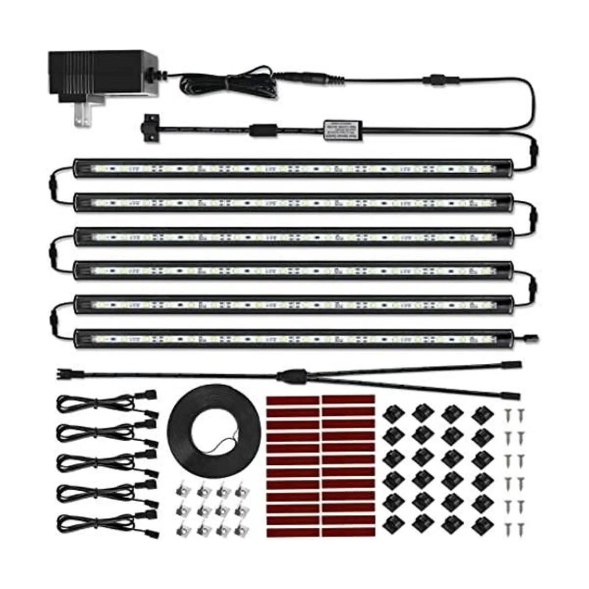 Litever Kit de iluminación LED seguro. Control de puerta activado. 6 barras de luz delgadas de 12 pulgadas. Enchufe extensible enlazable para caja fuerte de armas, armario, vitrina, despensa debajo del mostrador. Luz diurna 5000 K
