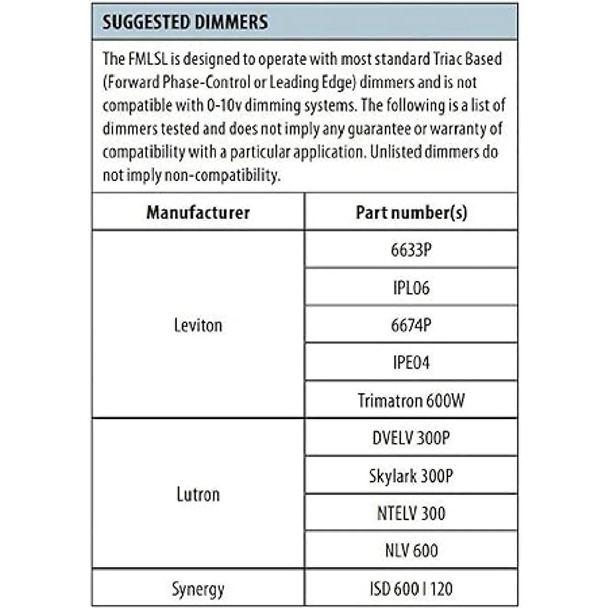 Lithonia Lighting all white fixture works with most standard dimmers from Leviton and Lutron allowing the right level of light output and is easily installed