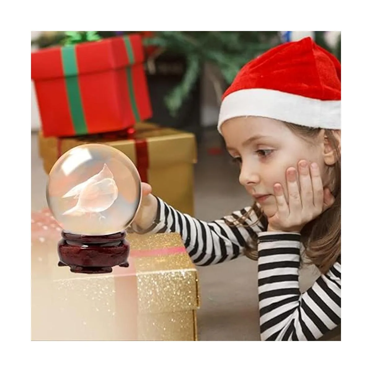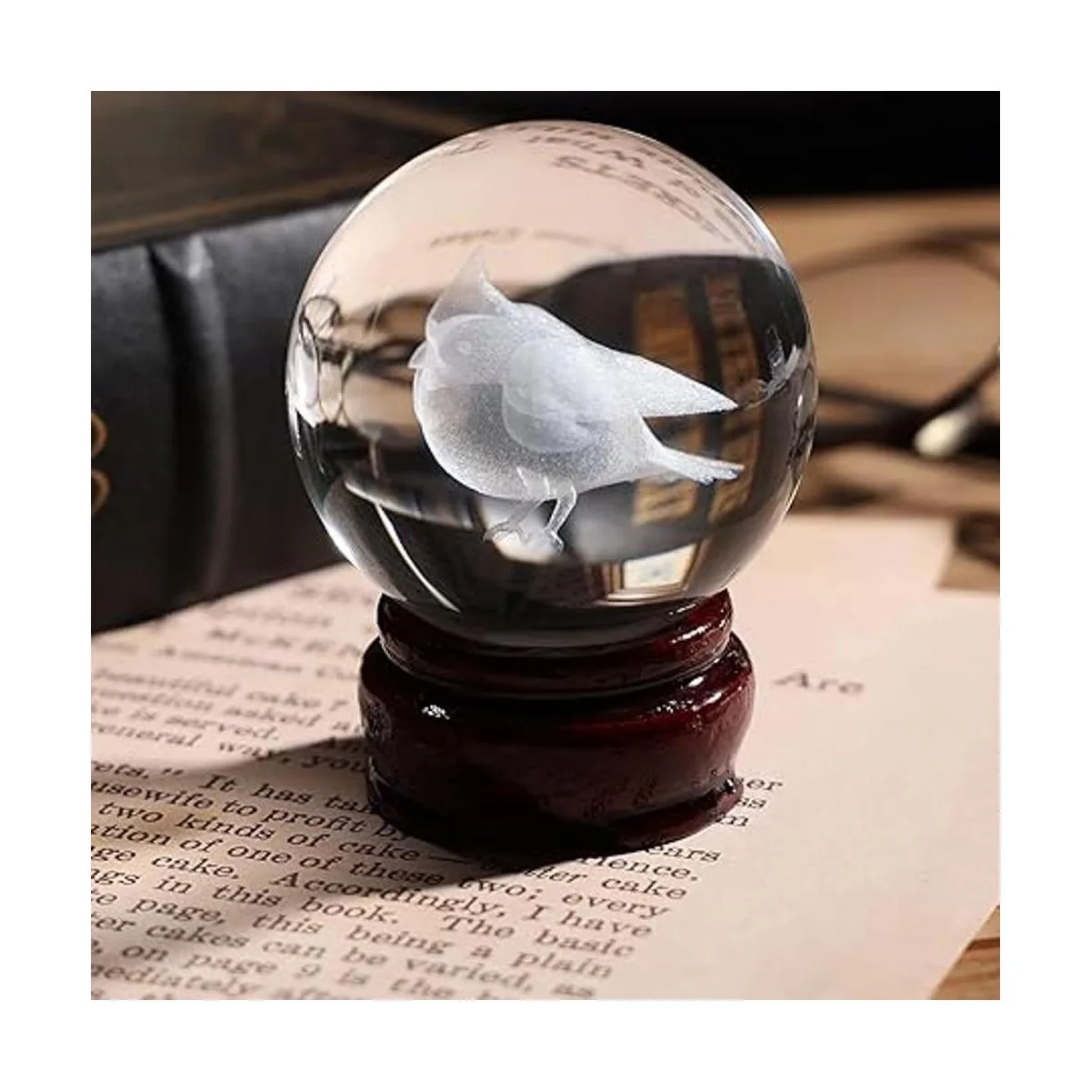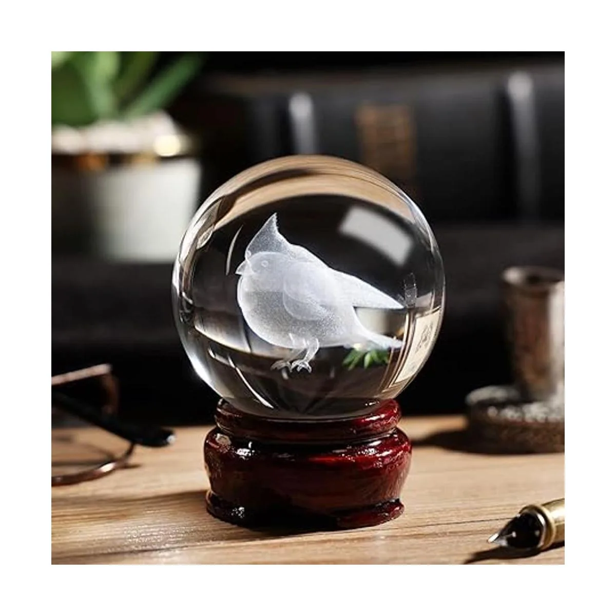 LITIALLY 2.4 pulgadas 2.362 in bola de cristal de pájaro cardenal 3D con soporte de madera decorativo para el hogar, pisapapapeles, fotografía de lente. Versión 2022 regalo para amantes de las aves, abuela, niños