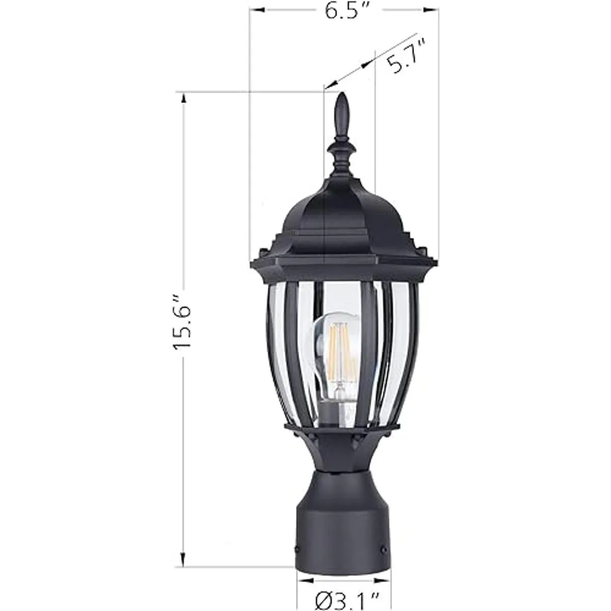 LITPaTH Farol de poste de luz para exteriores con una base E26 máximo 60 W, carcasa de aluminio más vidrio, acabado negro mate, paquete de 1