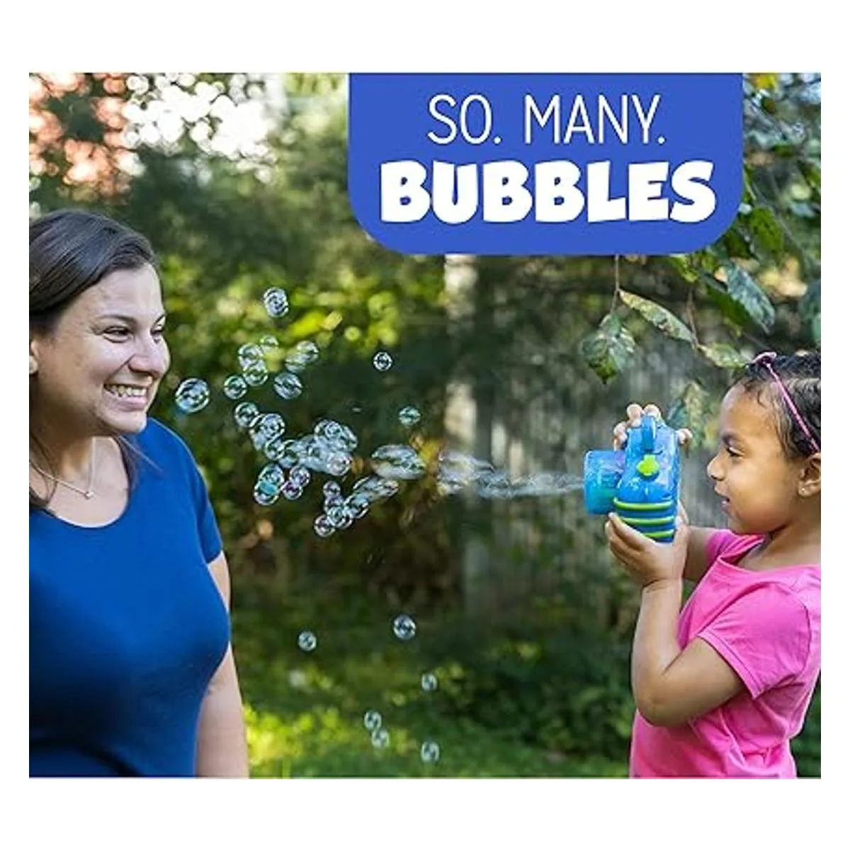 Es fácil de usar, simplemente vierte las burbujas en el depósito en la parte delantera de la máquina, pulsa el botón en la parte superior y mira cómo comienza la diversión. Funciona con cualquier solución de recarga, pero sugerimos nuestra solución premium no tóxica Fubbles para las mejores burbujas. Importante: para mantener tu juguete funcionando en su mejor momento, es necesario limpiar el mecanismo de juguete simplemente enjuagando con agua después de cada uso.