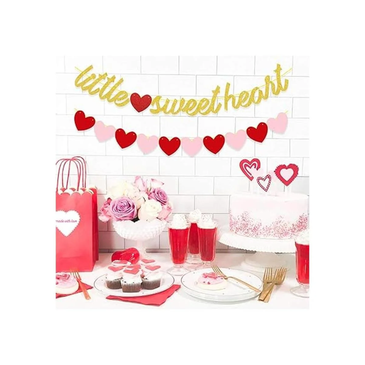 Little Sweetheart Banner Rojo Rosa Corazón Guirnaldas Oro Glitter Día de San Valentín 1er Cumpleaños Fiesta Bebé Ducha Decoración