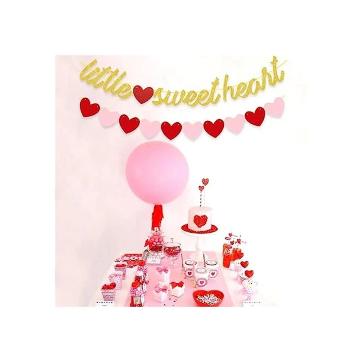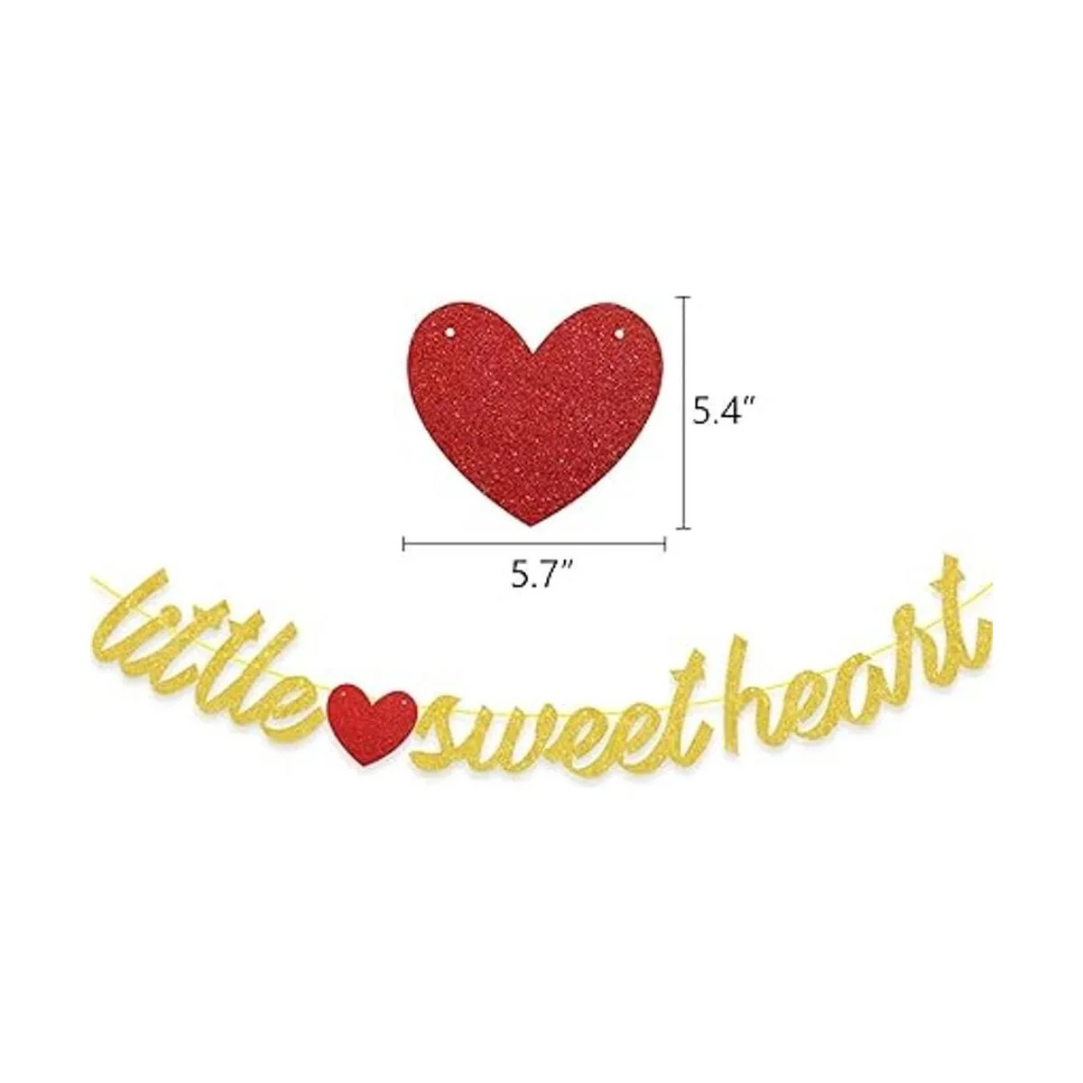 Decoración de cumpleaños de Sweetheart: 1 pancarta de Little Sweetheart, 1 guirnalda de corazón rojo rosa, incluye aguja y cintas para atar la guirnalda.