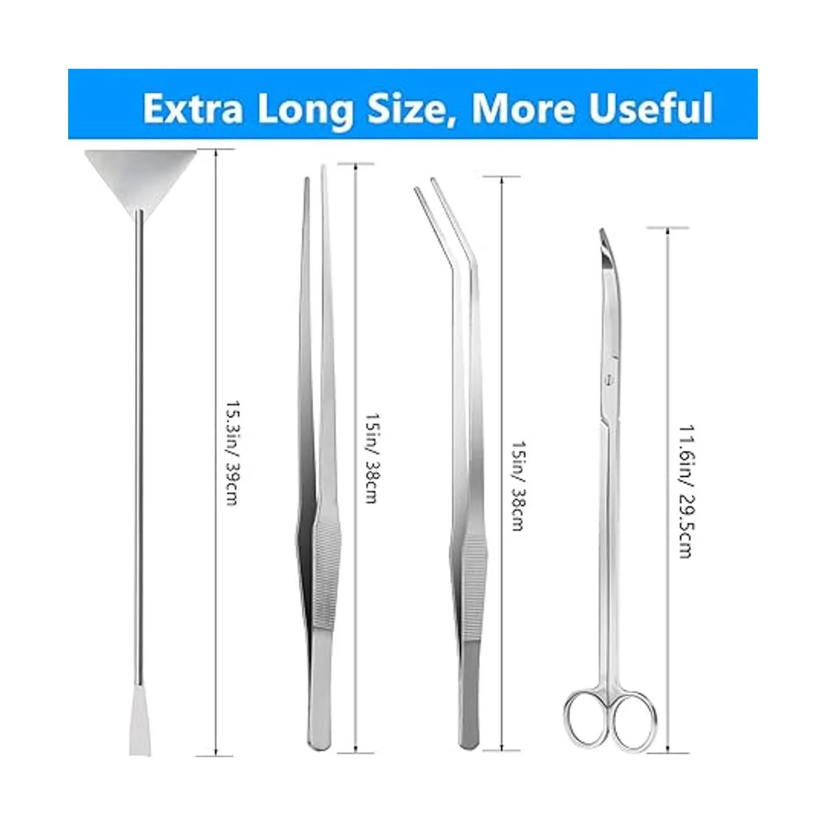 Liveek Kit de herramientas para acuario Aquascape de 15 pulgadas, 4 en 1 antioxidante para plantas acuáticas, herramienta de capado acuático, pinza de acero inoxidable, espátula para limpieza de tanques de acuarios