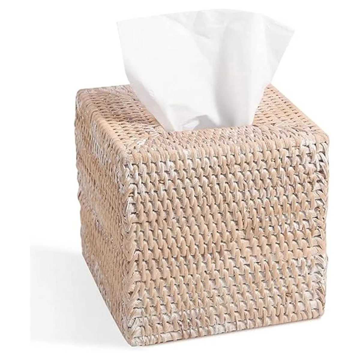 Livelab Caja de pañuelos de ratán cuadrado, tejido a mano, organizador de caja de pañuelos de mimbre natural, decoración de campo, 5.5 x 5.5 x 5.7 pulgadas, lavado blanco