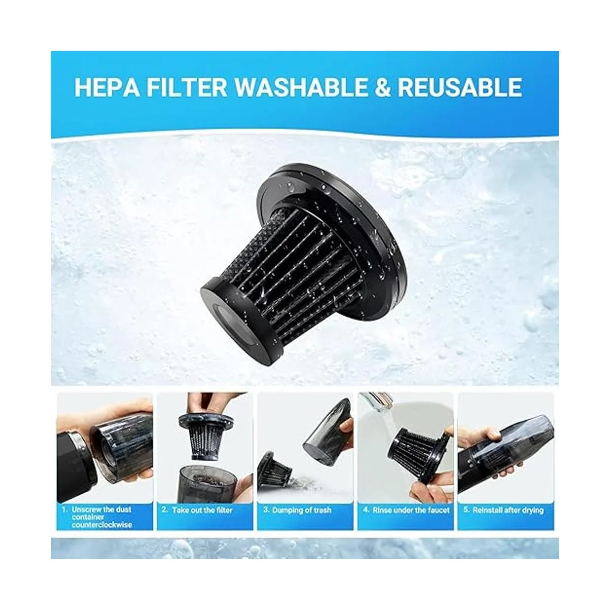 Filtro lavable y bajo nivel de ruido: el filtro de acero inoxidable puede filtrar el polvo de manera eficiente y reducir el polvo durante el trabajo, la aspiradora produce relativamente silencioso cuando se opera, libera a tu familia del ruido.