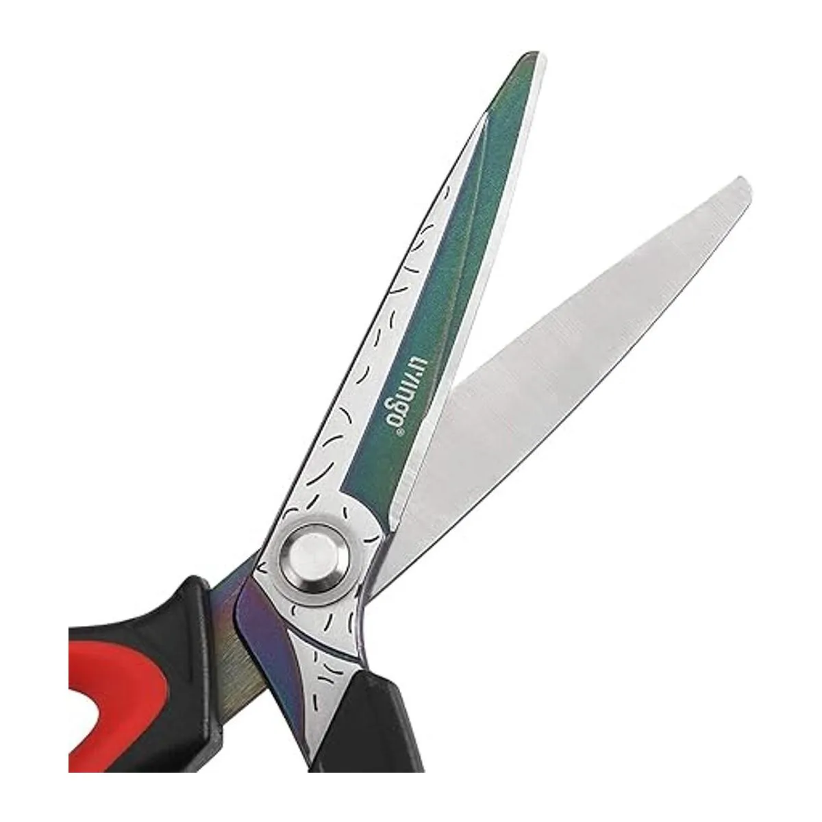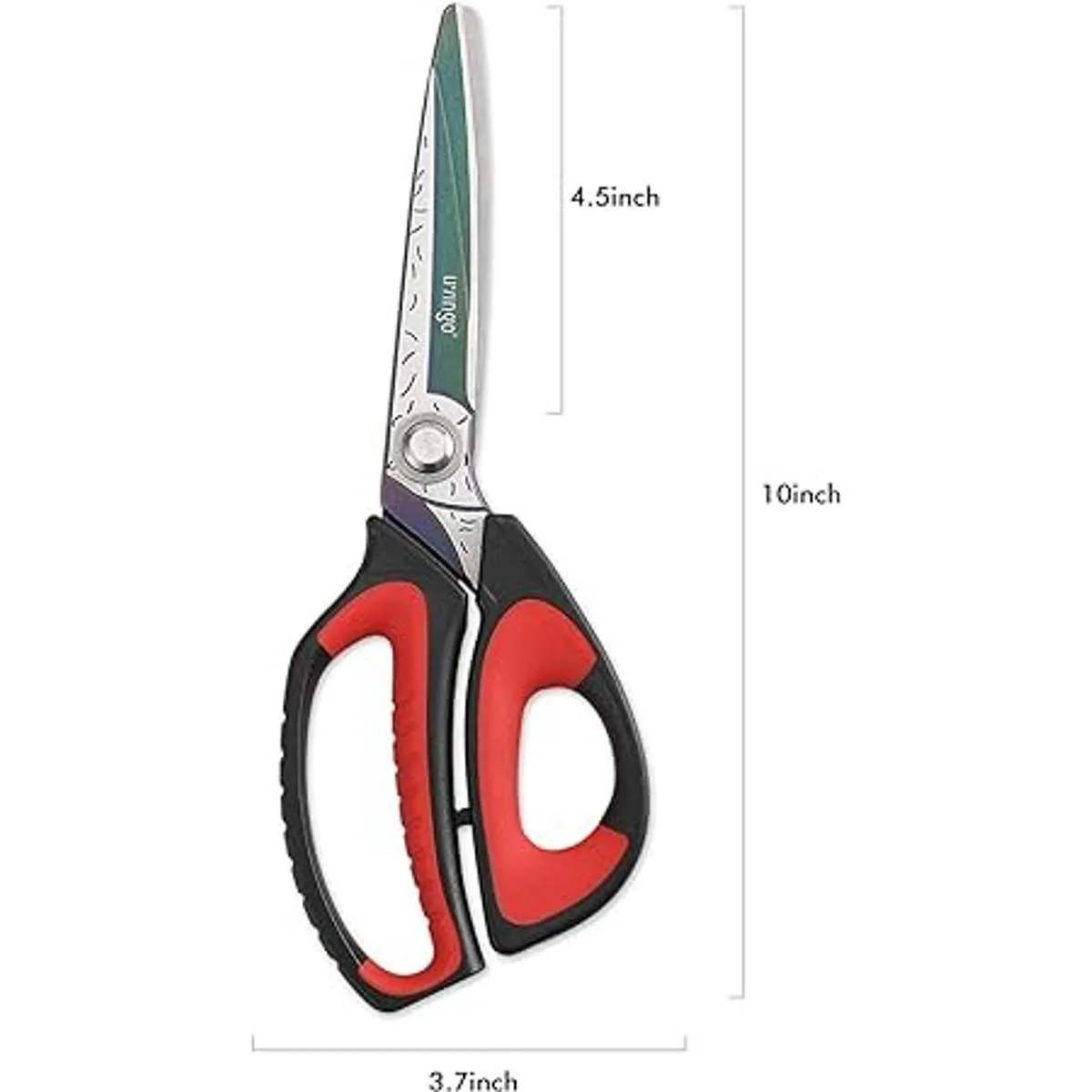 Las cuchillas de acero de longitud completa con revestimiento de titanio hacen que las cuchillas sean superiores, nitidez, dureza y durabilidad. Tijeras perfectas en taller, oficina, jardín, industria y hogar.
