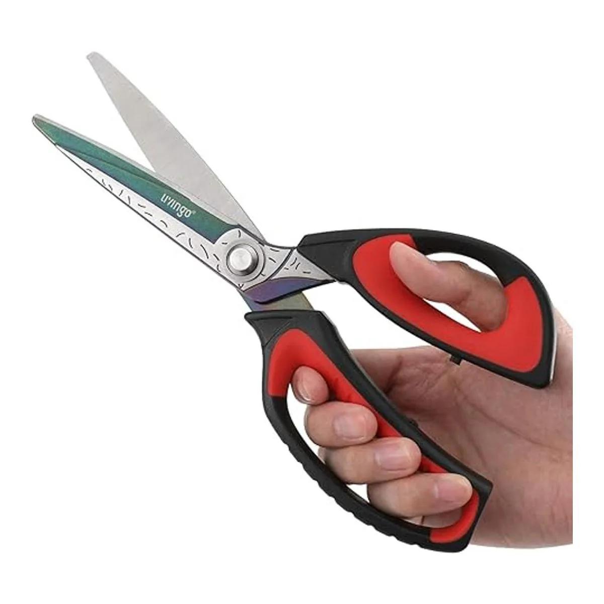 LIVINGO Tijeras multiusos resistentes de 10 pulgadas, con revestimiento de titanio de alta calidad, herramientas de acero inoxidable forjadas, tijeras industriales para poda del hogar, jardinería, tela