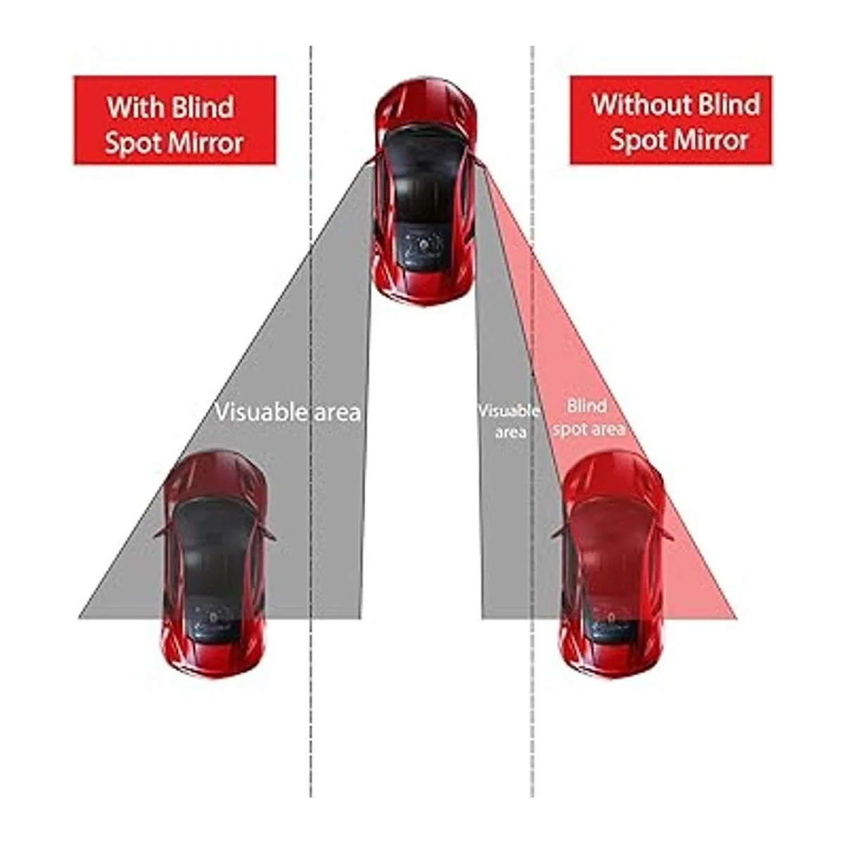 Elimina los puntos ciegos: los espejos de punto ciego proporcionan una visión amplia en ambos lados de los coches, eliminan los puntos ciegos, aumentan la seguridad de conducción y evitan accidentes, especialmente a altas velocidades en autopistas concurridas.