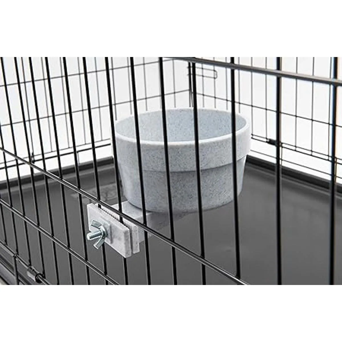 Fácil de usar: el cuenco de comida se fija fácilmente a la jaula para alimentar a los perros medianos