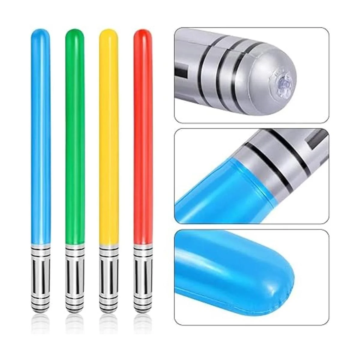El paquete incluye: 4 sables de luz inflables azules 4 sables de luz inflables verdes 4 sables de luz inflables rojos 4 sables de luz inflables amarillos todos los lados y esquinas de la galaxia cubierta