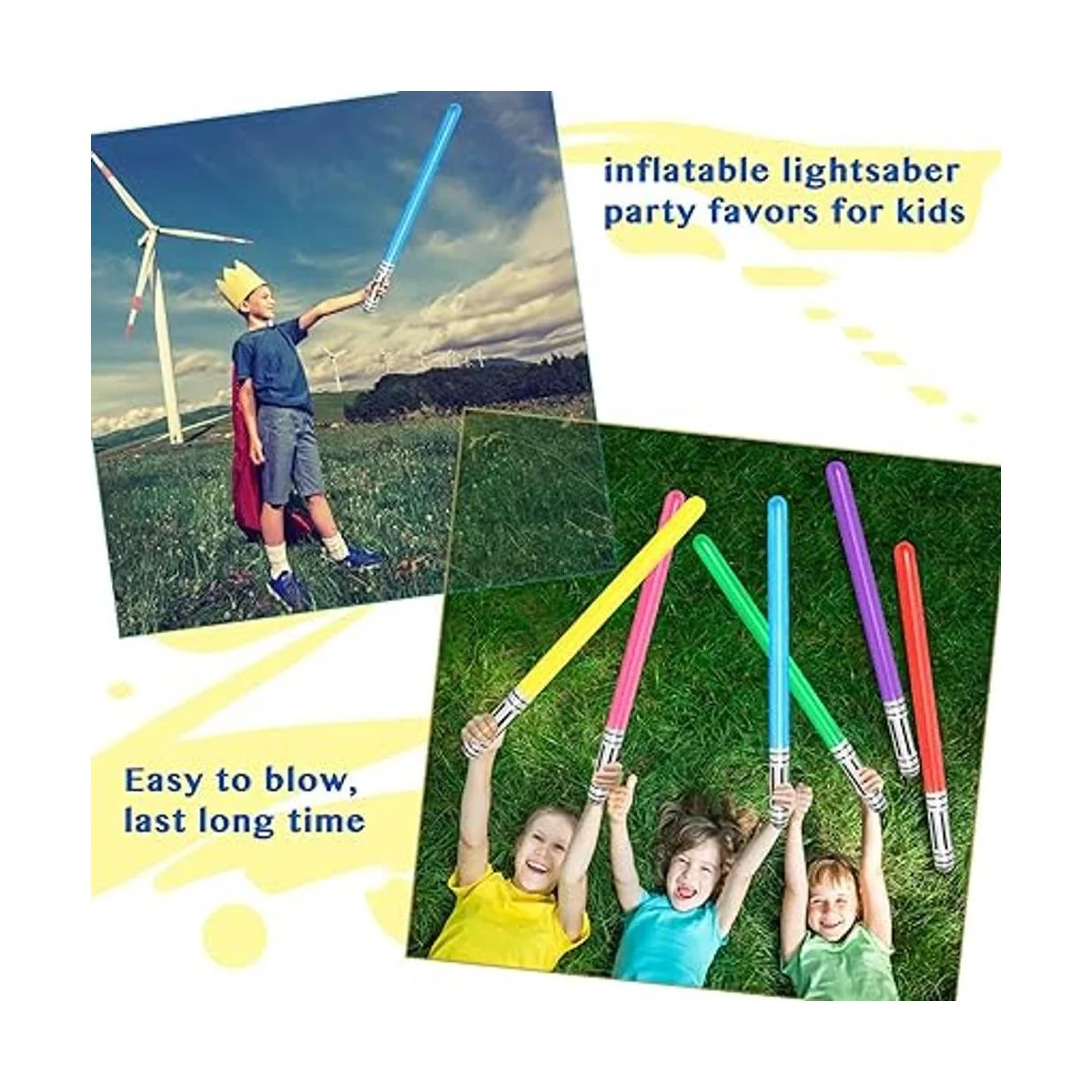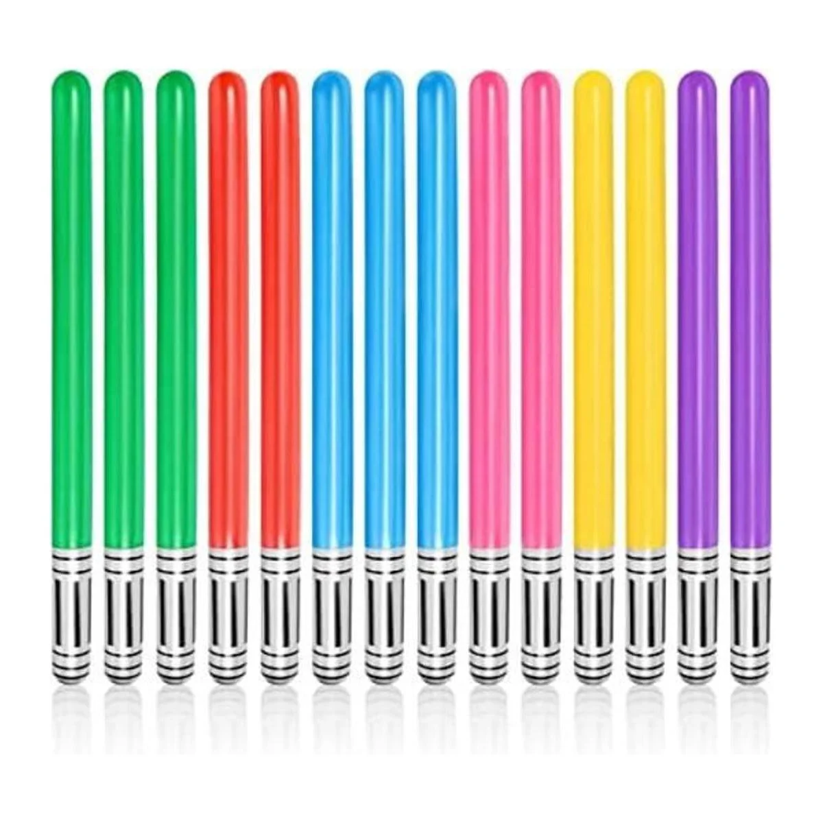 El paquete incluye: 3 azules 3 verdes 2 rojos 2 amarillos 2 rosas 2 sables de luz inflables púrpura todos los lados y esquinas de la galaxia cubierta
