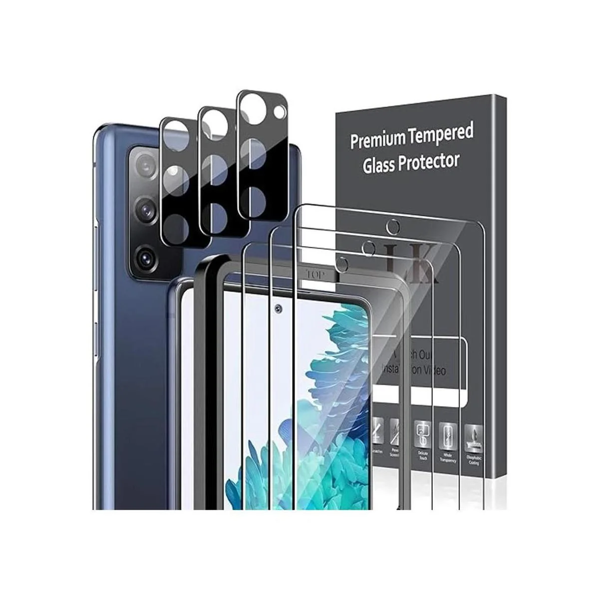 Ajuste perfecto para Galaxy S20 FE: incluye 3 protectores de pantalla de vidrio templado y 3 protectores de lente de cámara compatibles con Samsung Galaxy S20 FE 5G. no apto para Galaxy S20/Galaxy S21