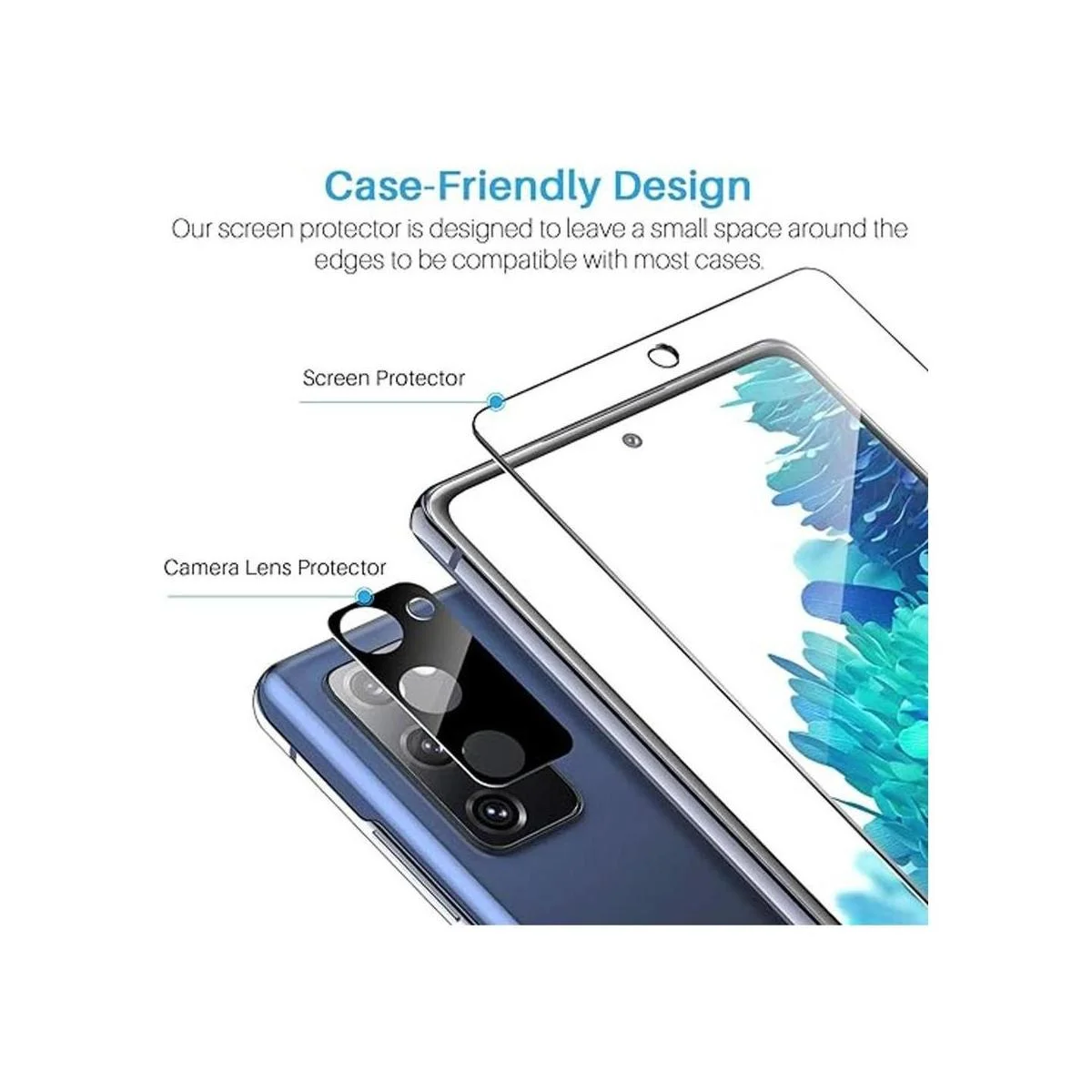 Diseño compatible con fundas: el protector de pantalla para Samsung Galaxy S20 FE está diseñado para ser compatible con la mayoría de las fundas. Deja espacio extra ligero alrededor de los bordes para que tu funda se envuelva alrededor de los bordes de tu dispositivo sin interferir con la película.