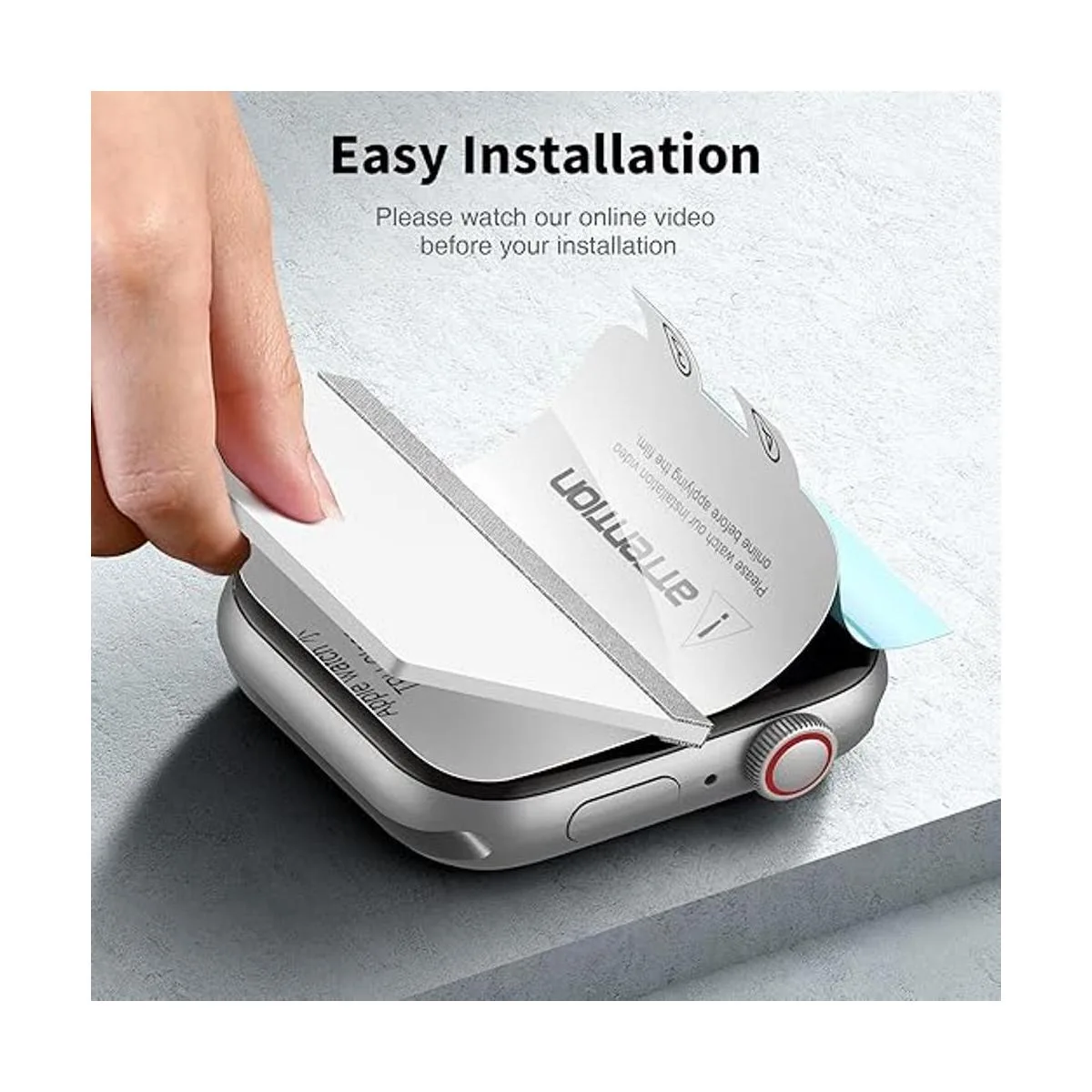 Materiales flexibles y máxima protección Nota: el protector de pantalla no es de vidrio templado, está hecho de TPU que puede cubrir los bordes curvos del Apple Watch de 1.77 pulgadas, proporcionando la máxima protección contra arañazos. Con nanoelástico para evitar la rotura de la pantalla de tu Apple Watch de 1.772 in causada por caídas.