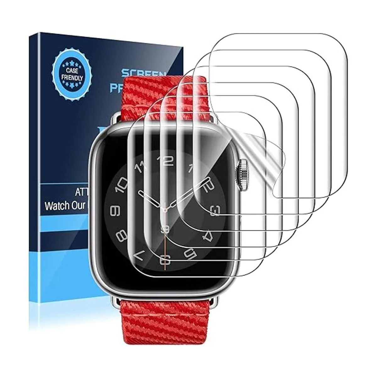 LK Paquete de 6 protectores de pantalla compatibles con Apple Watch Series 8 1.772 in Serie 7 Nueva versión antiarañazos, película de poliuretano termoplástico suave autocurable para Apple Watch Series 8 de 1.57 pulgadas, transparente HD