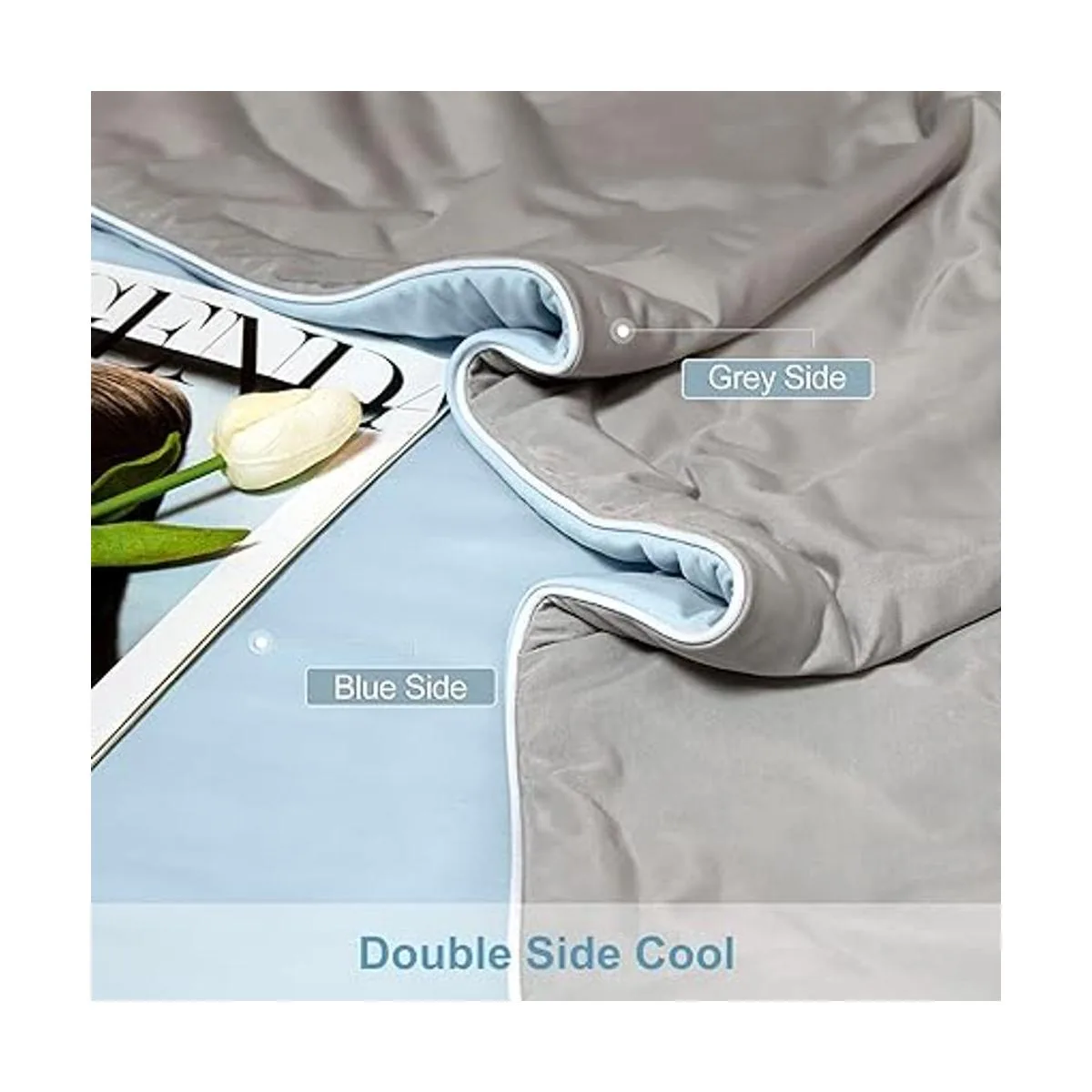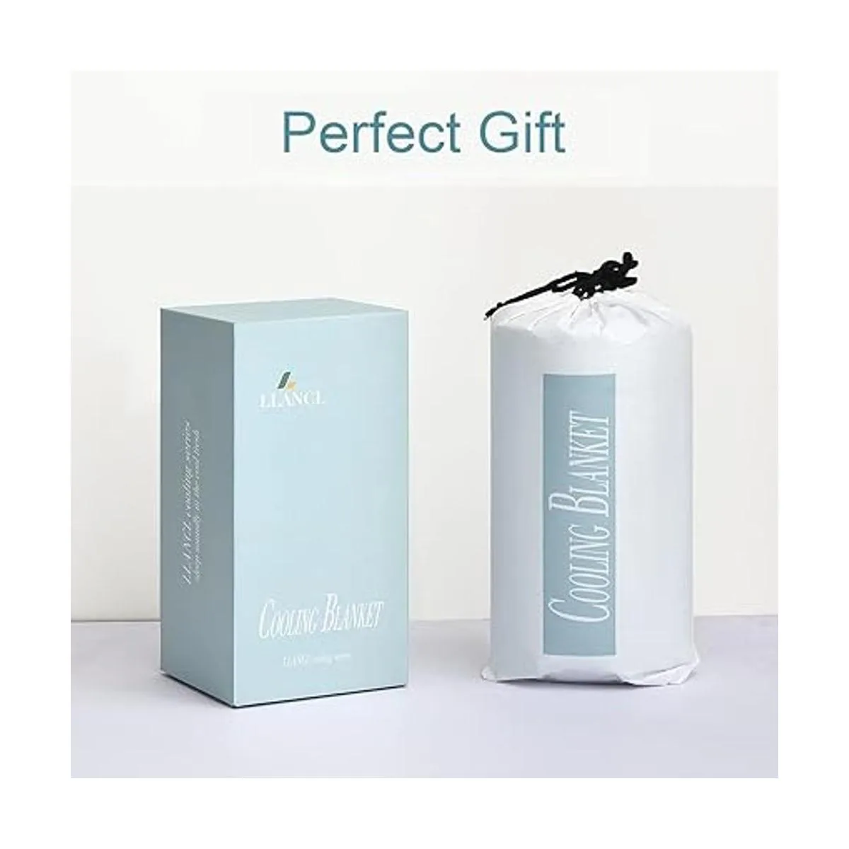 LLanCL Mantas refrescantes para personas que duermen con calor, fresca como helado, manta ligera para verano con doble cara fría, tela refrescante, tamaño Queen 79 x 91 pulgadas, azul y gris