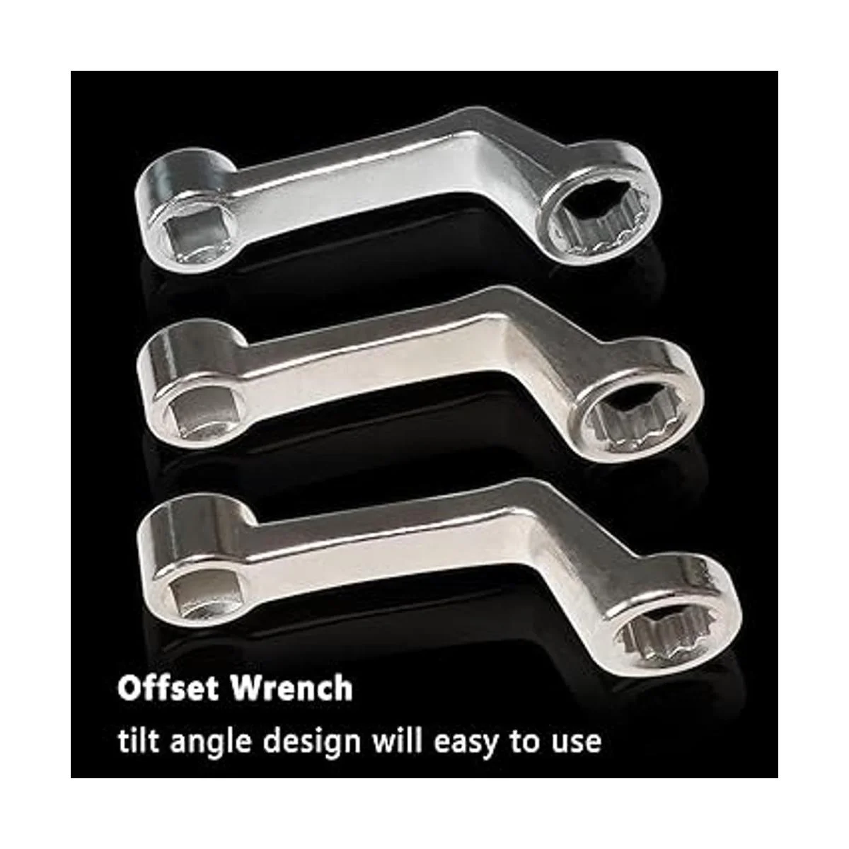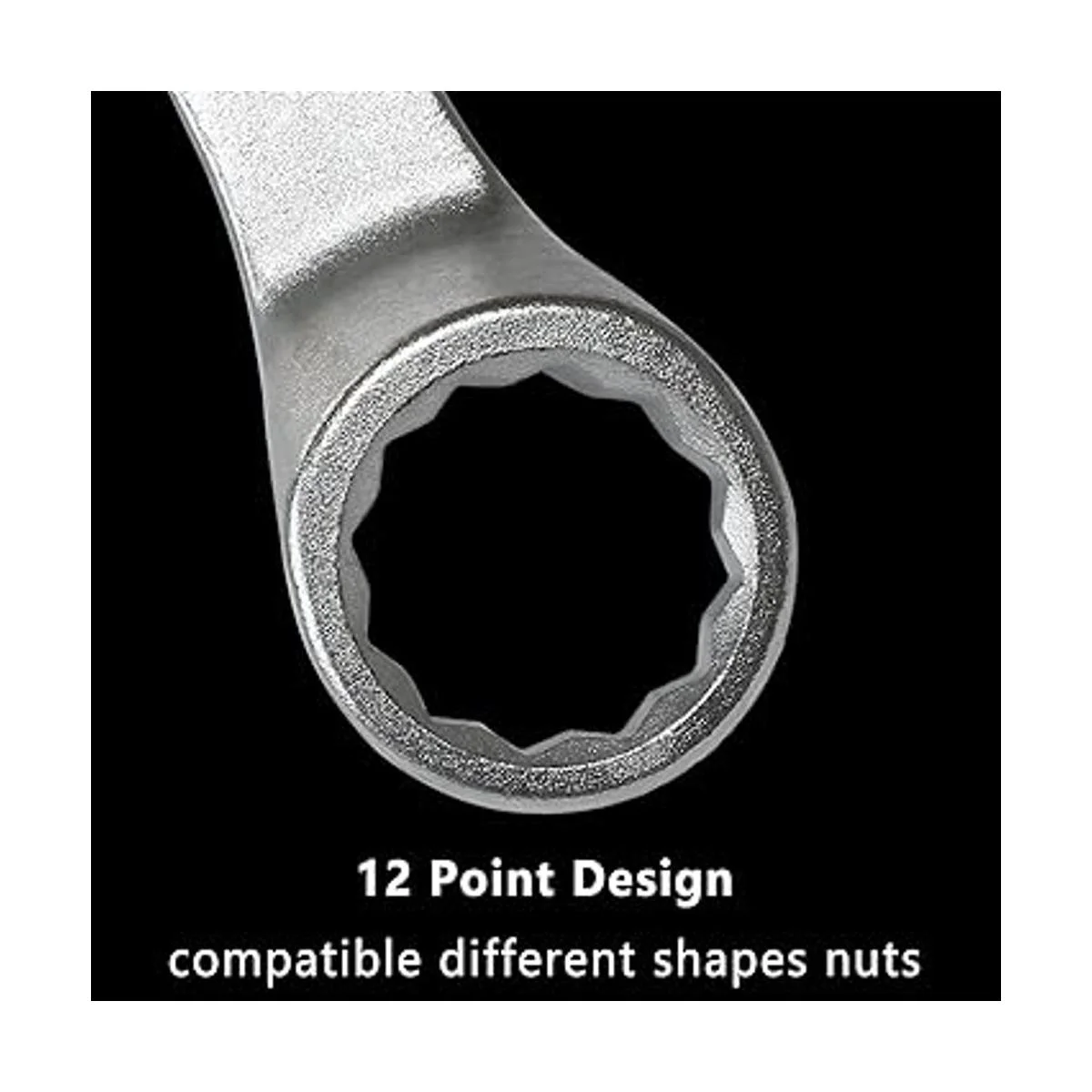 Fácil de usar: este diseño de ángulo de inclinación de llave puede ahorrar esfuerzo cuando se utiliza, el diseño de 12 puntos hace que la llave se ajuste a tuercas de diferentes formas y utiliza una unidad de 3/8 pulgadas. El material de la herramienta es de acero de alta calidad, fuerte y duradero, la superficie está recubierta con una capa antioxidante