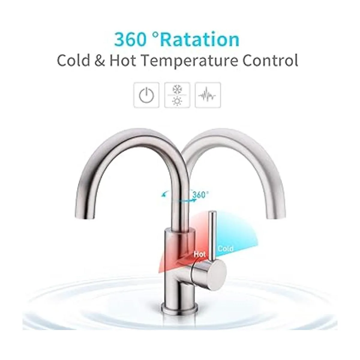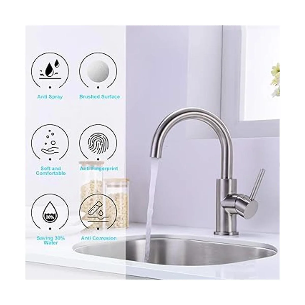 Llave de lavabo estilo barra, de acero inoxidable para lavabo tipo granja, mezcladora pequeña para baño o cocina, de níquel cepillado