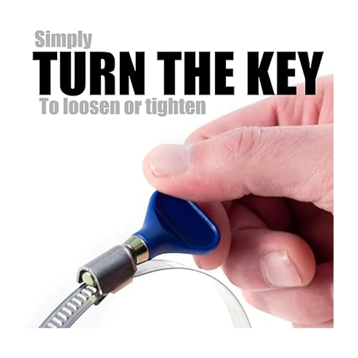 Llave grande y fácil de girar: la llave azul fácil de girar y fácil de ver está hecha de un polímero fuerte y duradero. La llave está diseñada para hacer que la seguridad y la desfijación de la manguera sea mucho más fácil en los nudillos. No más destornilladores de cabeza plana que rompen los nudillos o llaves de vaso pequeñas. Simplemente gira la llave en sentido horario para apretar, en sentido contrario a las agujas del reloj para aflojar.