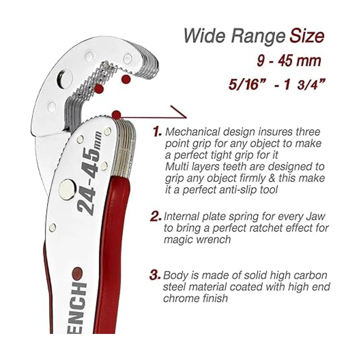 Si alguna vez has tenido que perder tiempo buscando la herramienta adecuada para el trabajo, entonces sabes lo frustrante que hace que sea con la llave mágica, puedes quitar fácilmente cualquier tuerca o perno en cuestión de segundos sin la necesidad de ninguna otra herramienta de perno grande, pernos de latón oxidados pernos pelados e incluso accesorios de tubería, la llave mágica puede quitarlos todos