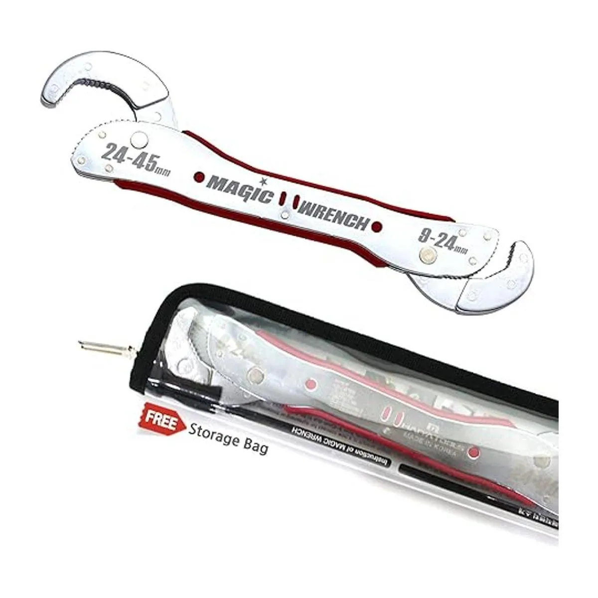 Llave mágica: es una llave de trinquete multiusos original hecha en Corea, todo en uno como se ve en la televisión que se adapta automáticamente para apretar y aflojar objetos en una numerosa gama de tamaños y formas con función de trinquete que permite una rápida abrazadera y liberación repetidamente hecha con una mano con un mejor agarre, viene con una bolsa de plástico para una mejor protección y fácil transporte y almacenamiento