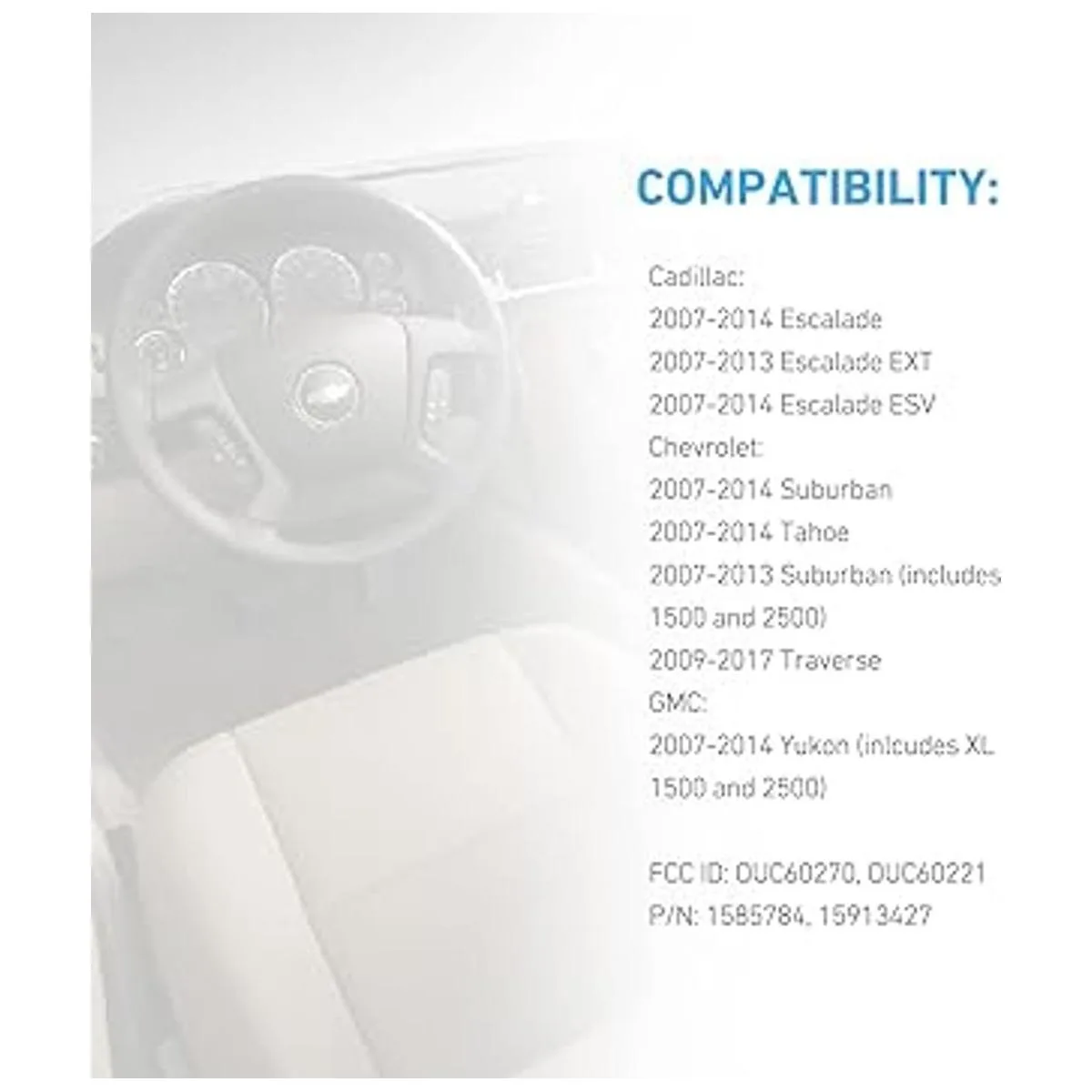 Llave remota de entrada sin llave para vehículos compatible con Chevy TahoeSuburbanGMC Yukon, Cadillac Escalade ESV EXT FCCID OUC60270, OUC60221 20869057, 15913427