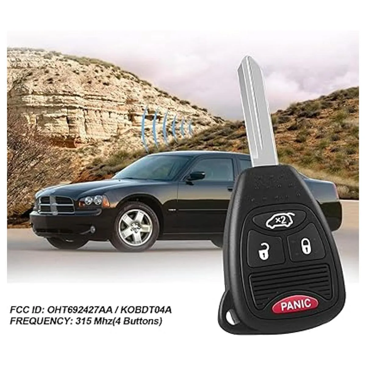 Compatibilidad: compatible con FCC ID: OHT692427AA/KOBDT04A. Para una lista completa compatible, comprueba nuestra descripción del producto y herramienta de ajuste del vehículo. Este reemplazo de llavero es compatible con Chrysler 200 20112014/Chrysler 300,300C, 300M 20052007/Chrysler Aspen Sebring 2000 272009/PT Cruiser 20062010